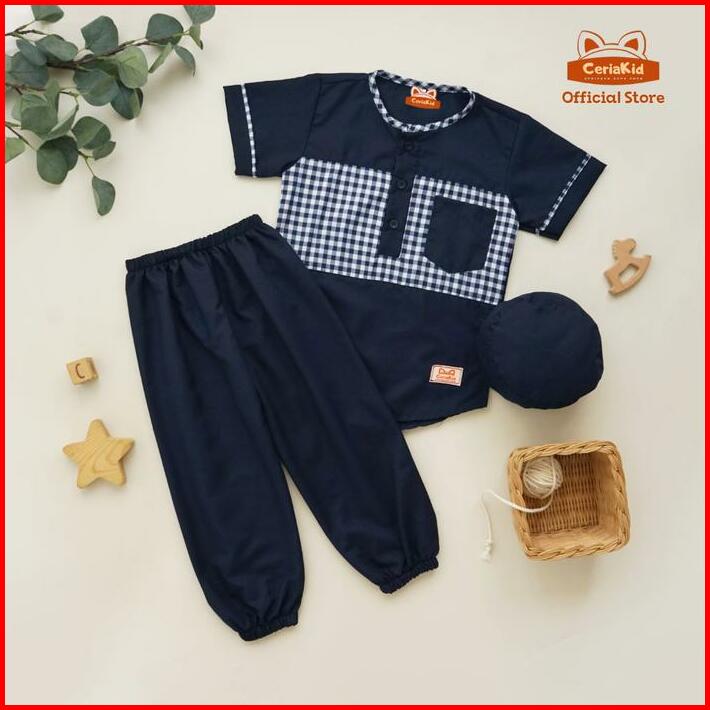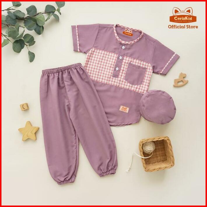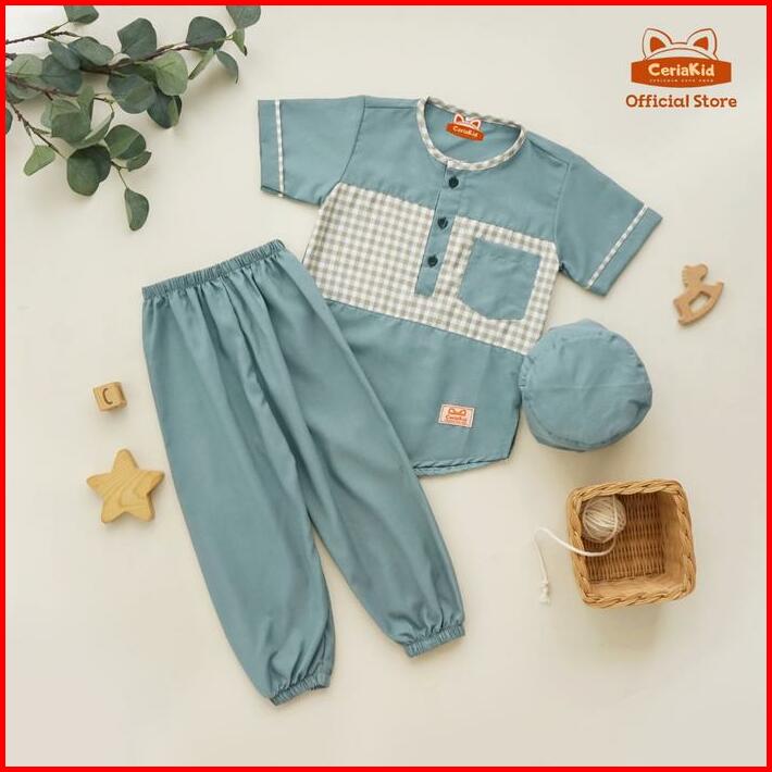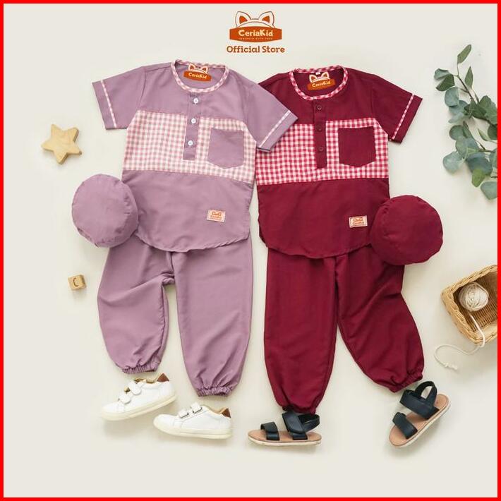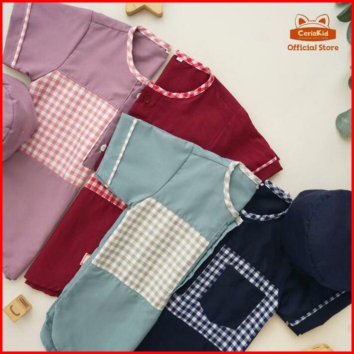 Ceriakid Baju Koko Anak Keren Bahan Lembut Setelan Plus Celana Bonus Peci Tripoli 0-9 Tahun Loose Turkish Muslim Nyaman