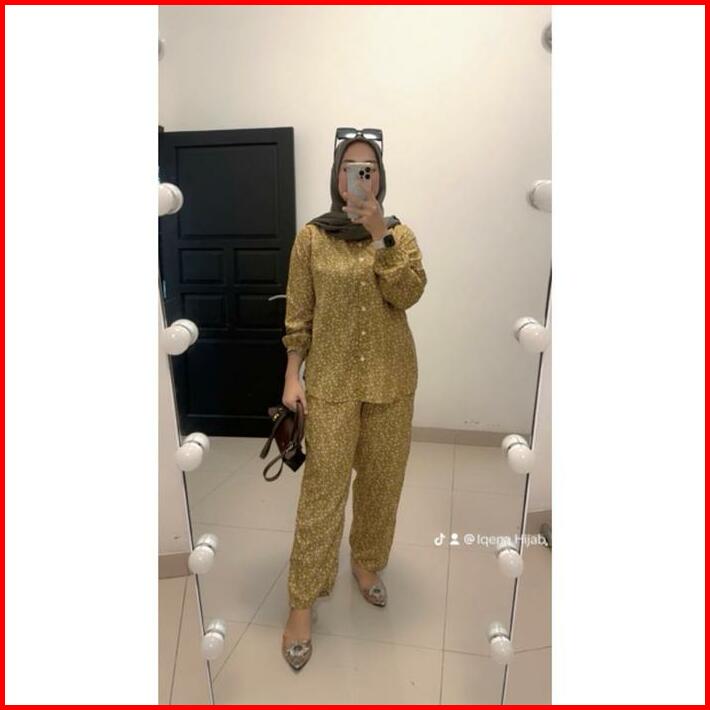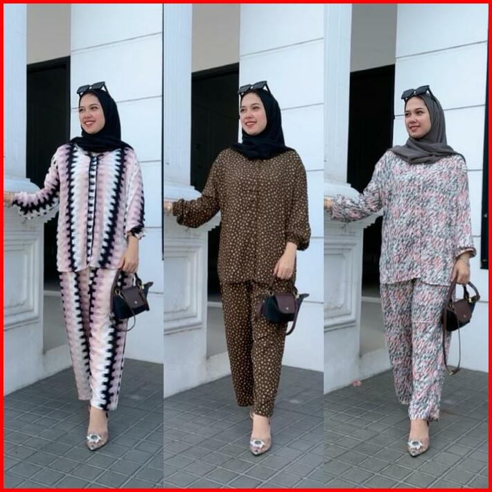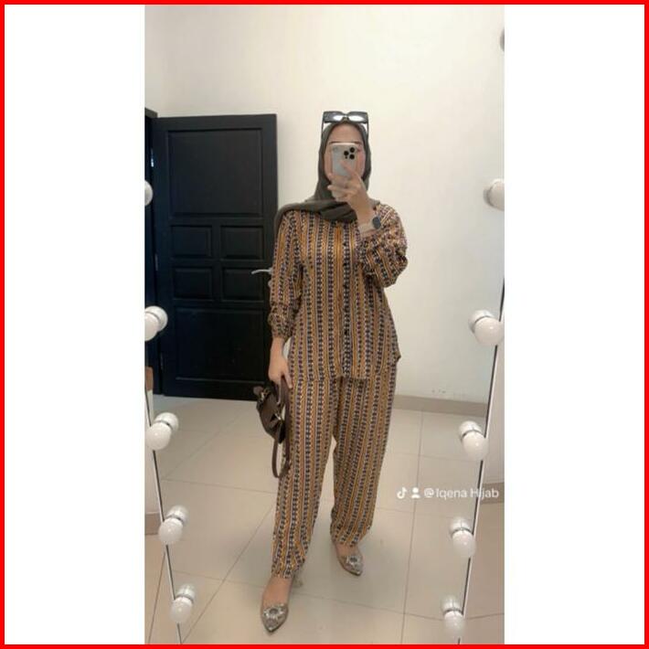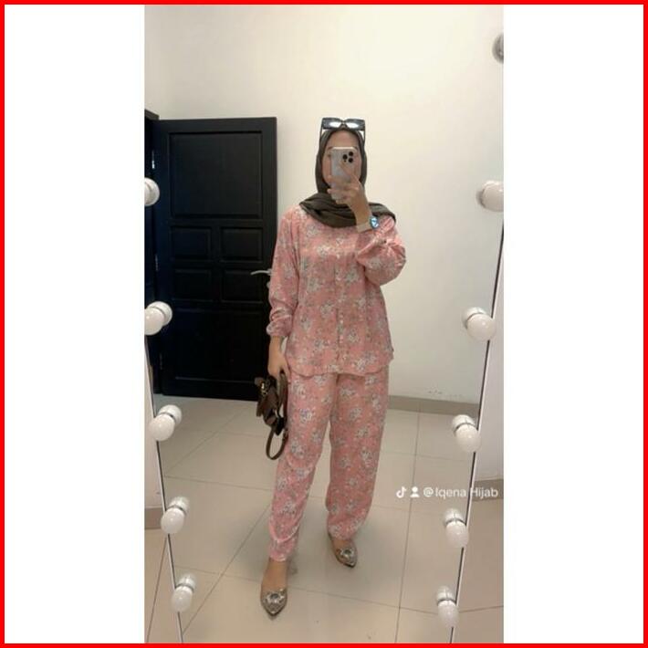 Iqena- Oneset Jumbo Rayon Lengan Panjang Piyama Motif Setelan Wanita