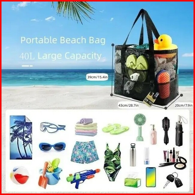 Tas Renang Jaring Tote Mesh Bag Aero Jaring Renang Hitam Pantai