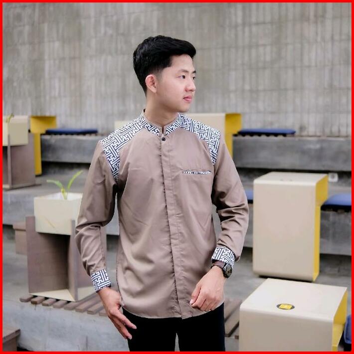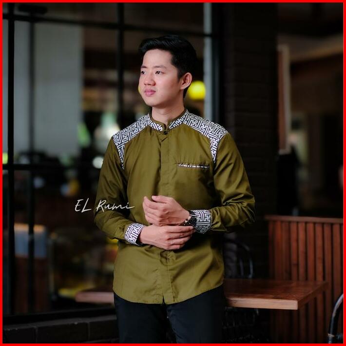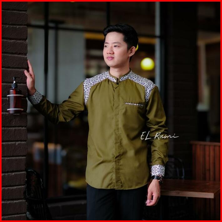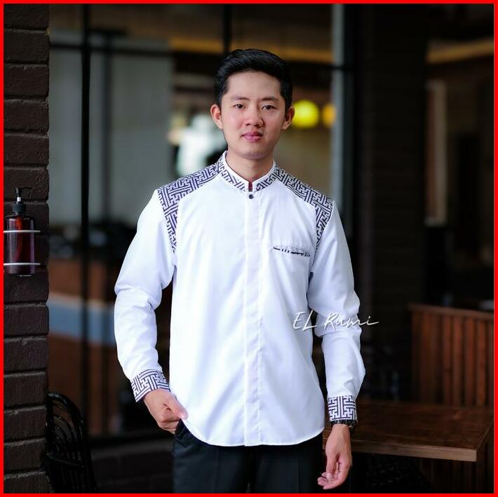 Baju Koko Pria El Rumi Lengan Panjang Motif Araseo Kombinasi Putih Batik