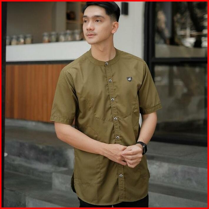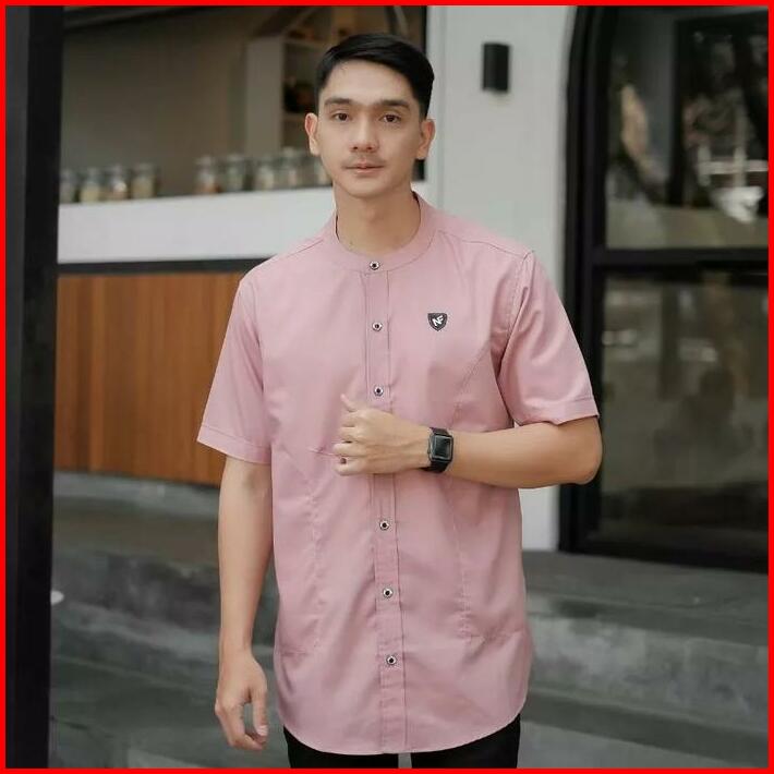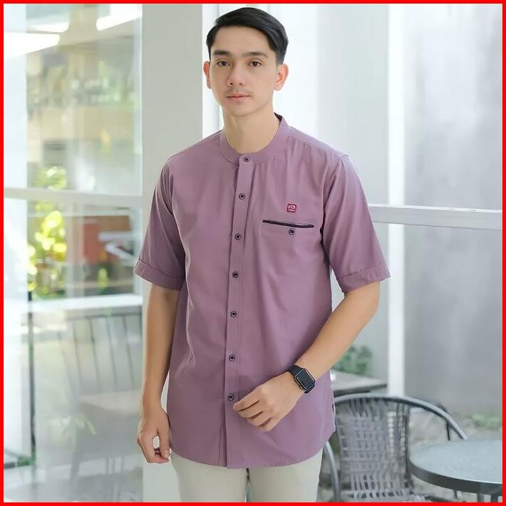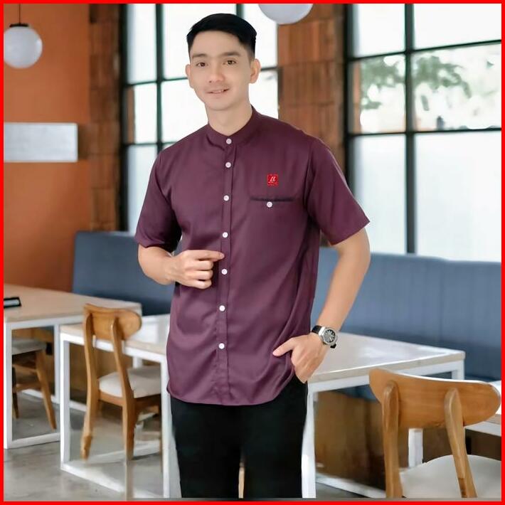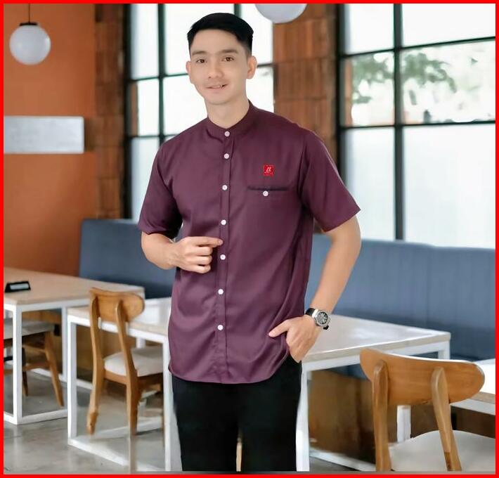 Burgundy Baju Koko Pria Dewasa Lengan Pendek Bahan Katun Toyobo Deluxe Baju Muslim Trending Terbaru Lebaran 2025