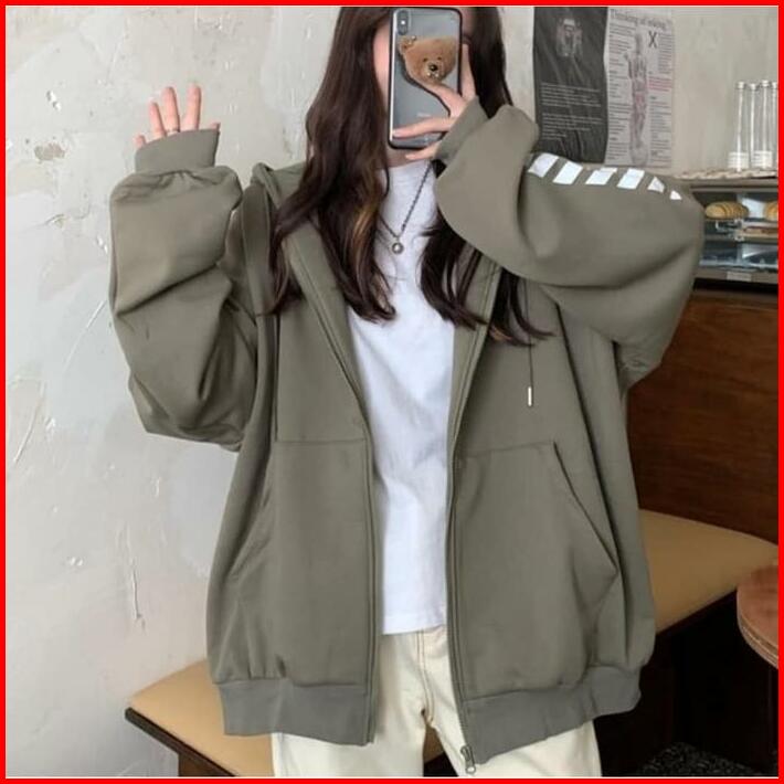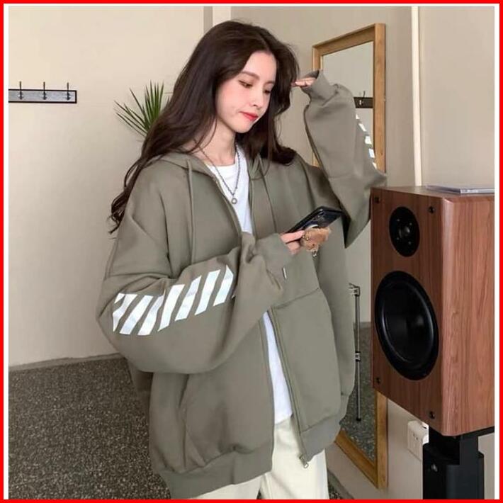 Zebra Zipper Hoodie Jaket Oversize S-4xl Bahan Fleece Sablon Panjang Wanita Motif Sweater Basic