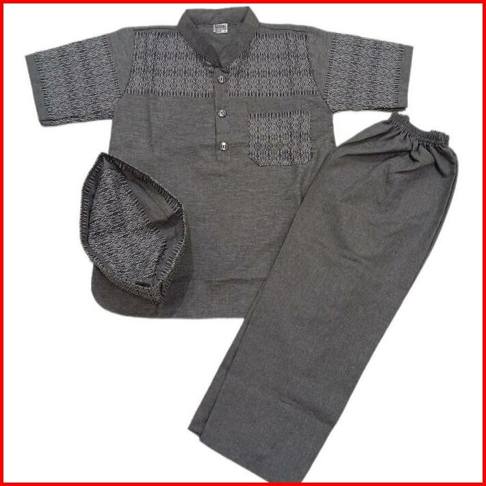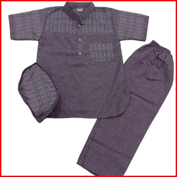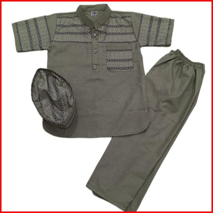Baju Koko Anak Laki Terbaru Usia 4-12 Tahun Bahan Katun Madinah Bordir Motif Songket Ketupat Edisi Lebaran Setelan Musli
