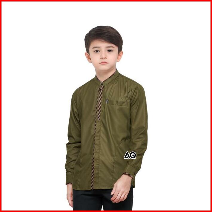 Baju Koko Anak Lengan Panjang Usia 8-15 Tahun Motif Batik Afala Katun Muslim Kurta Putih