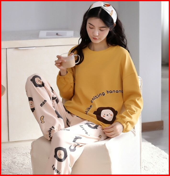 Baju Tidur Piyama Import Wanita Korea Lengan Panjang Celana Panjang 2