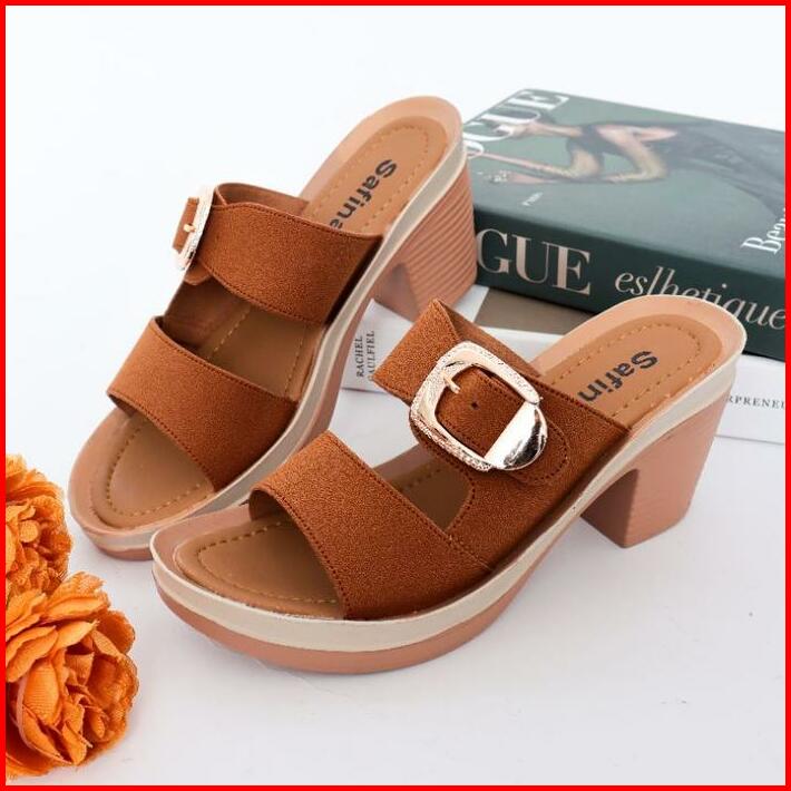 Sandal Wanita Wedges Sendal Perempuan Selop Slop Tinggi Hak Pesta Kondangan Kekinian Terbaru High Heels Ibu Ibu Terlaris