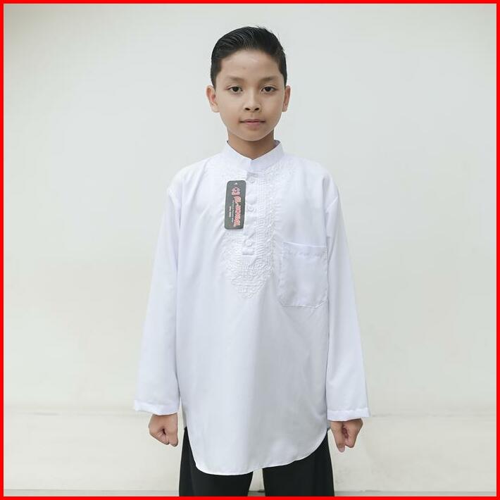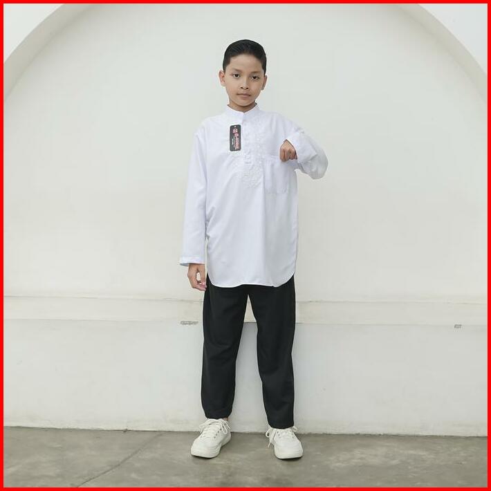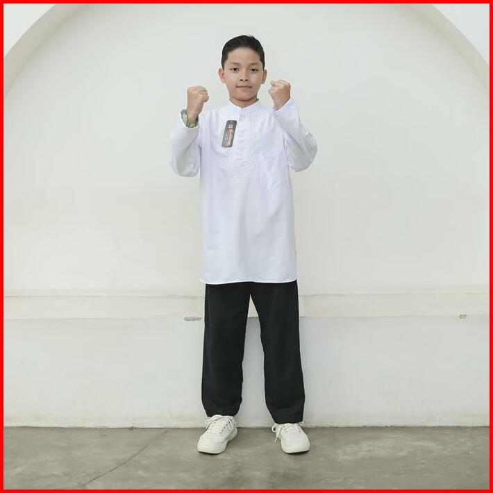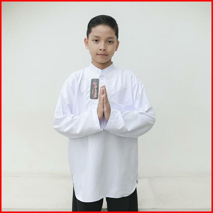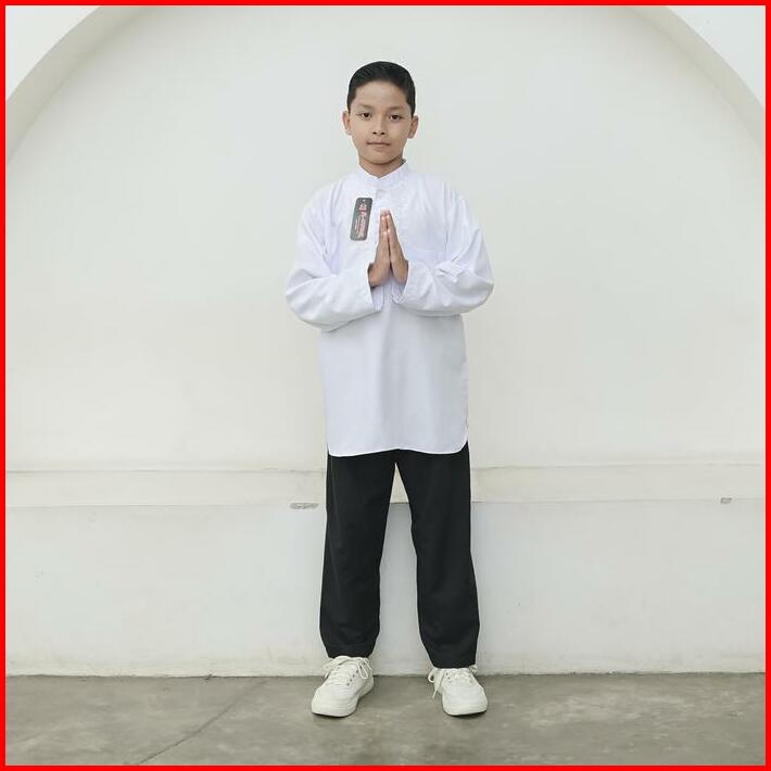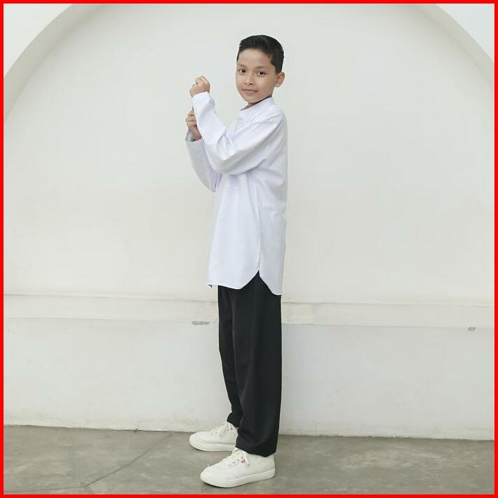 Setelan Koko Baju Putih Celana Hitam Lengan Panjang Anak Laki-laki Katun Micro Turki Muslim