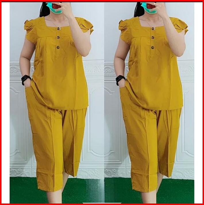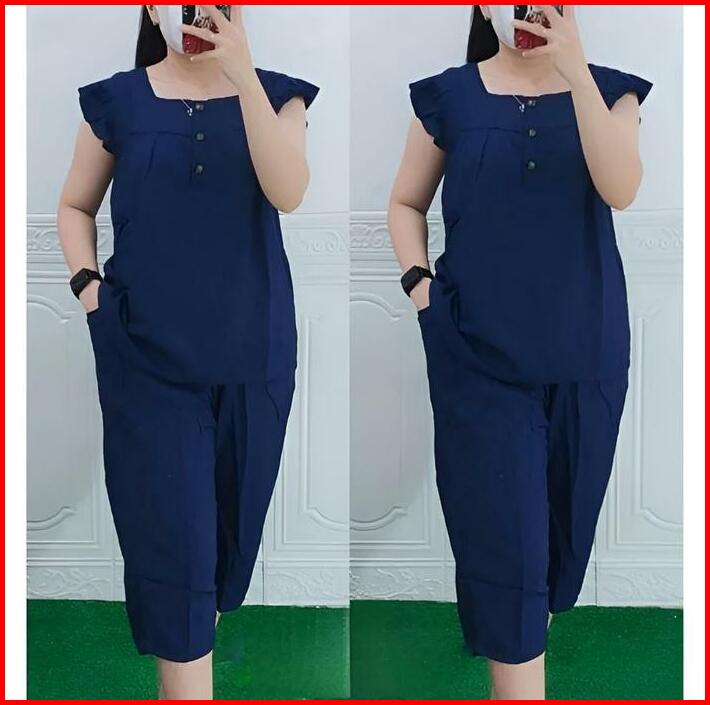 Setelan Bangkok 7 8 Rayon Crinkle Premium Oneset Crinkle Airflow Polos Setelan Wanita Oneset Kancing Baju Celana Kulot A