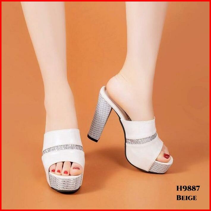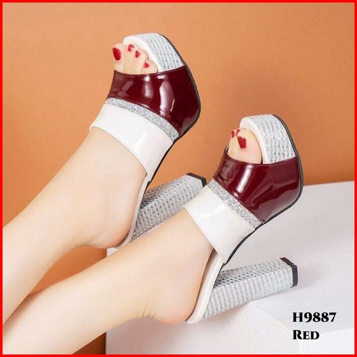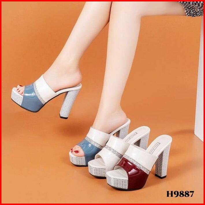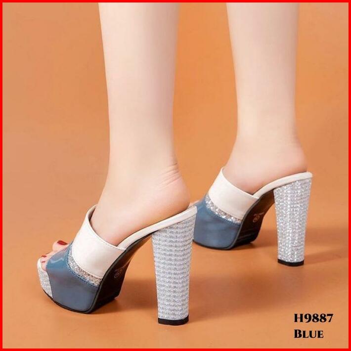 High Heels Sandal Hak Wanita Gliters Chunky Platform Mules Fashion Ala Korea Style H9887