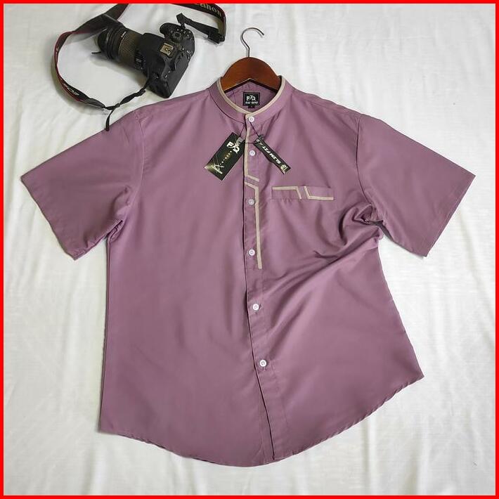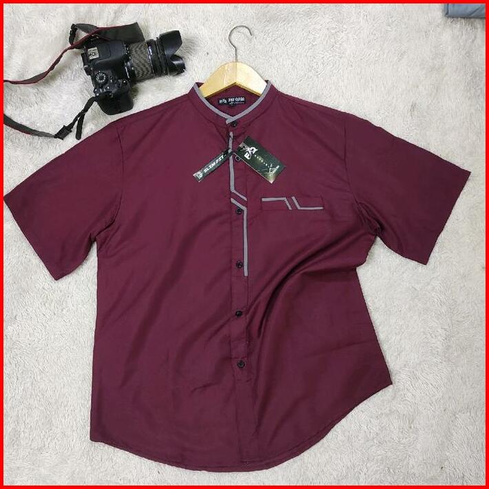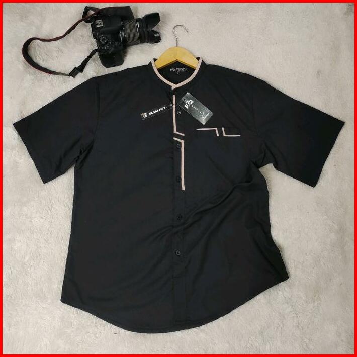 Baju Kemeja Koko Lengan Pendek Motif Atharazka Kain Katun Premium Gread A Polos Setrip Navy Hitam Putih Pria
