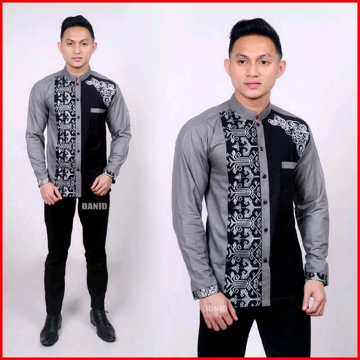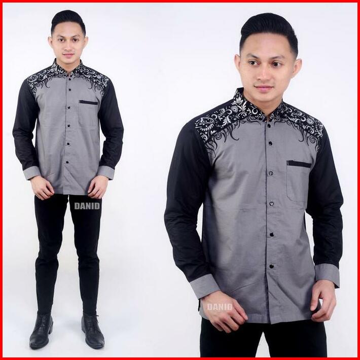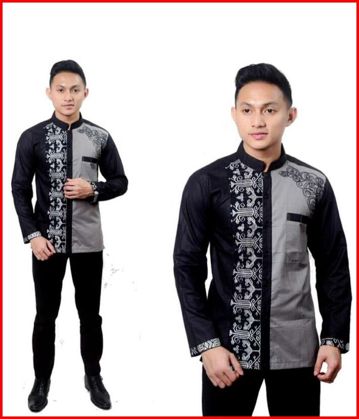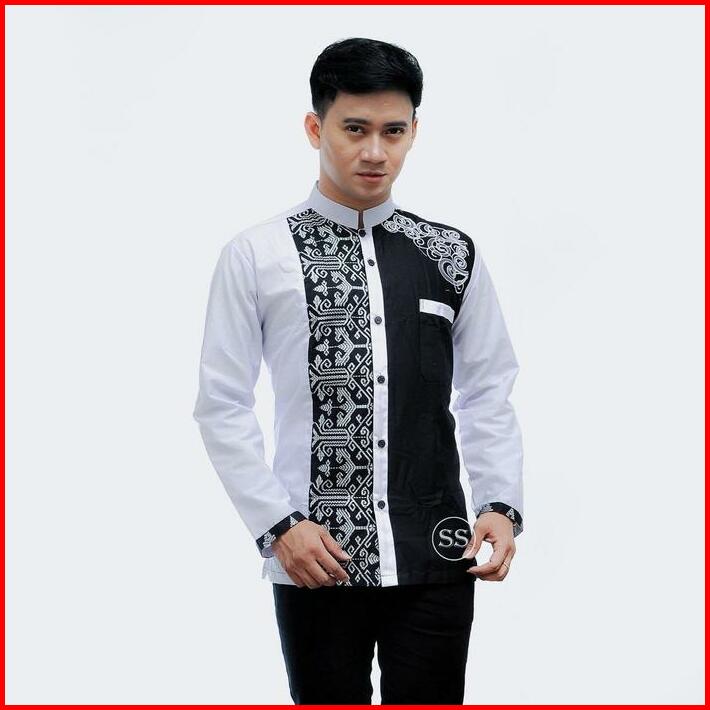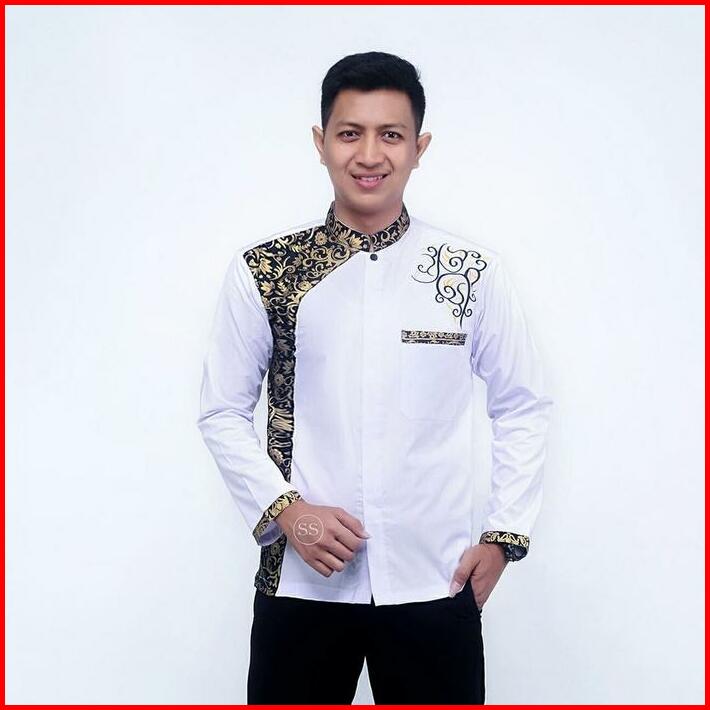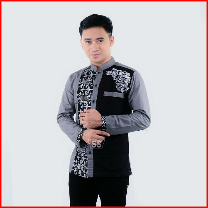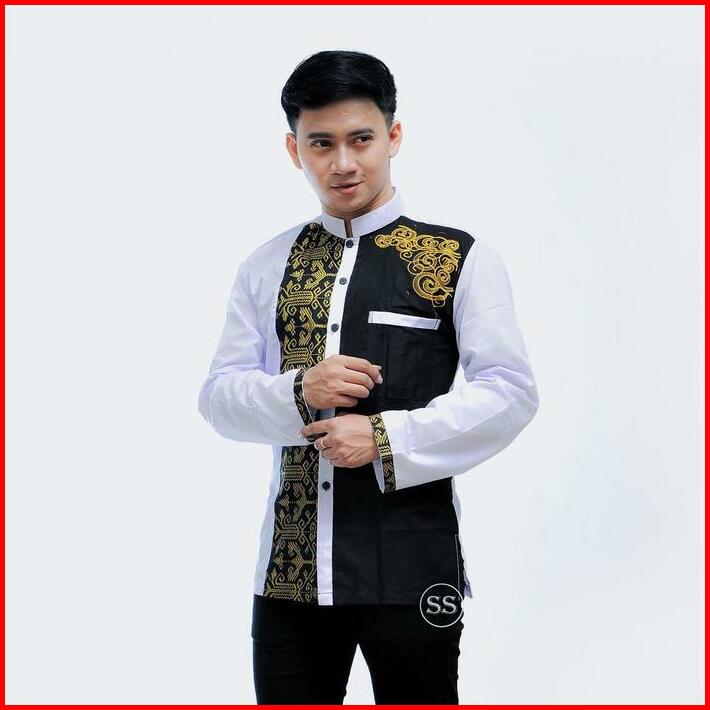 Baju Koko Pria Dewasa Terbaru Lengan Panjang Kombinasi Batik Muslim Bordir Formal Katun Nyaman Mewah Keren Variasi Motif