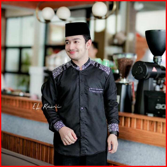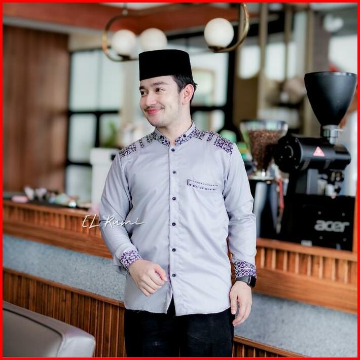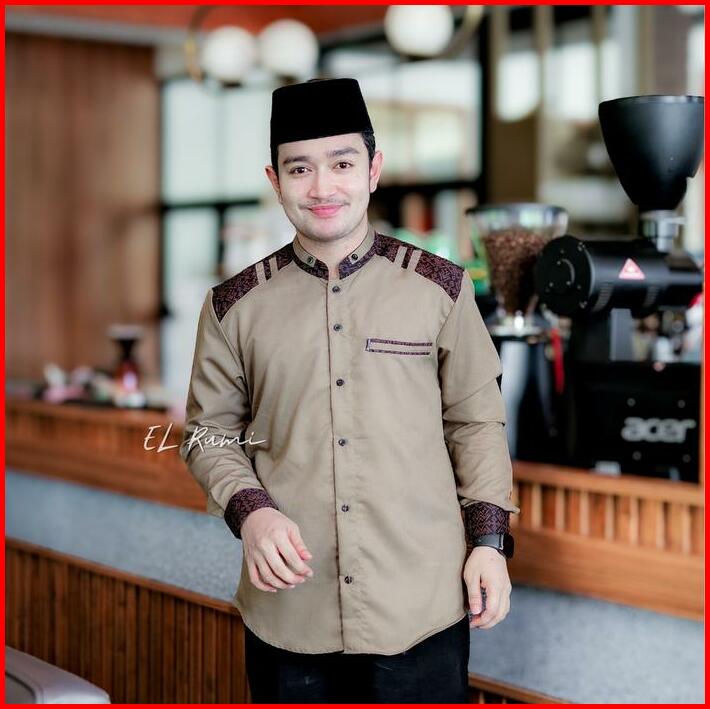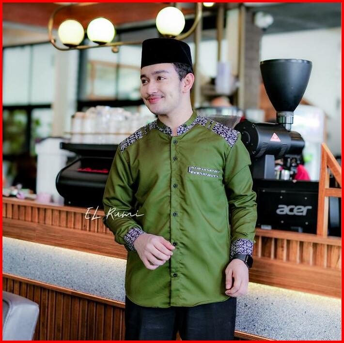 Buju Koko Muslim Kemeja Pria Lengan Panjang El Rumi Kombinasi Batik Motif Katun Toyobo Baju Dewasa