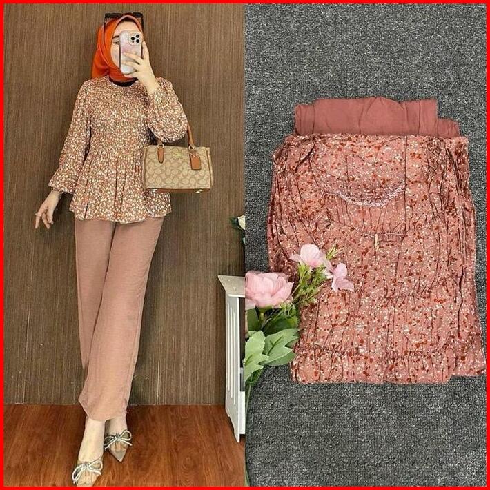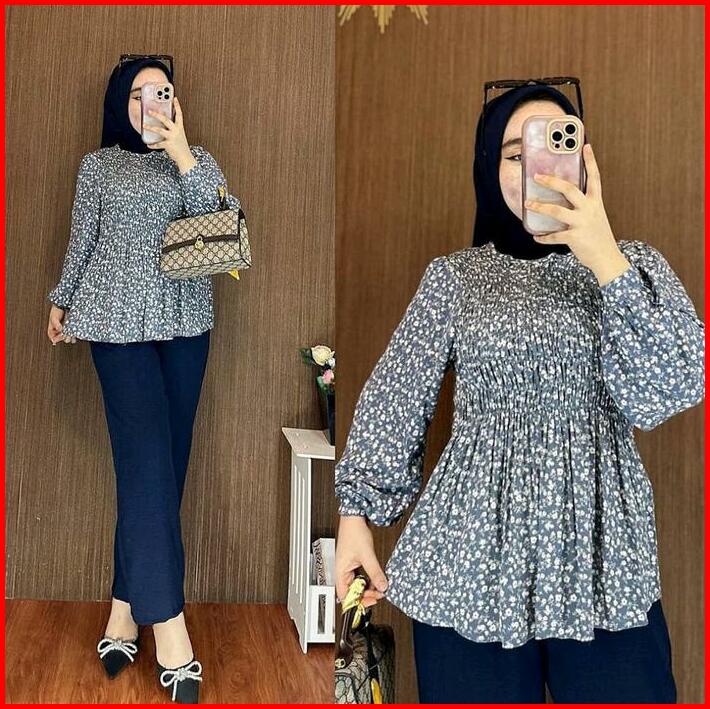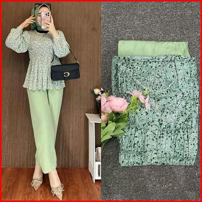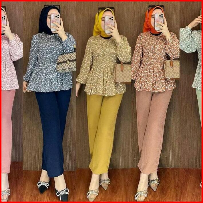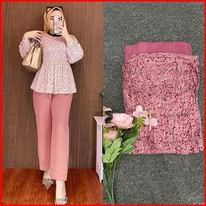 One Set Rayon Kerut Dada Premium Setelan Wanita Atasan Bawahan Busui Kerja Santai All Size Muslim Nyaman