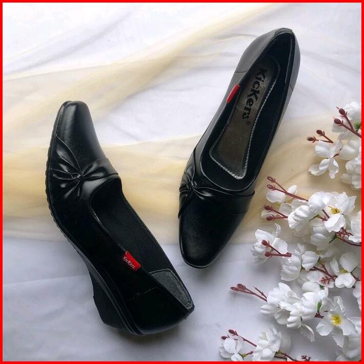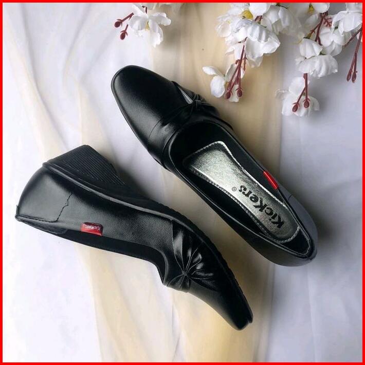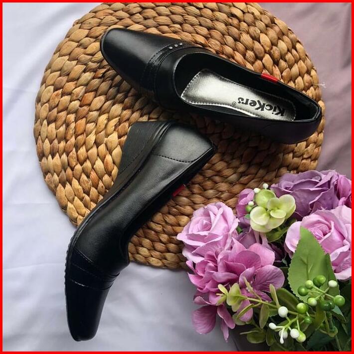 Gazuhan Store Sepatu Pantofel Wanita Hitam Motif Bunga Formal Sekolah Guru Hak 3 Cm Shoes High Hells Cewek Terbaru Heels