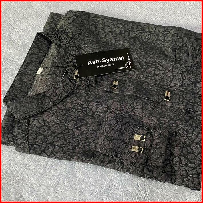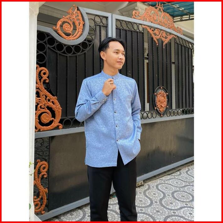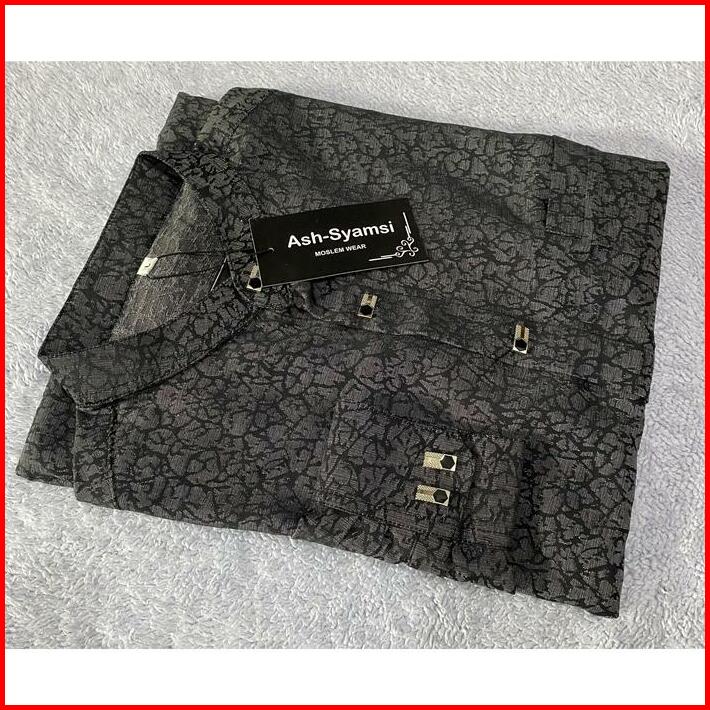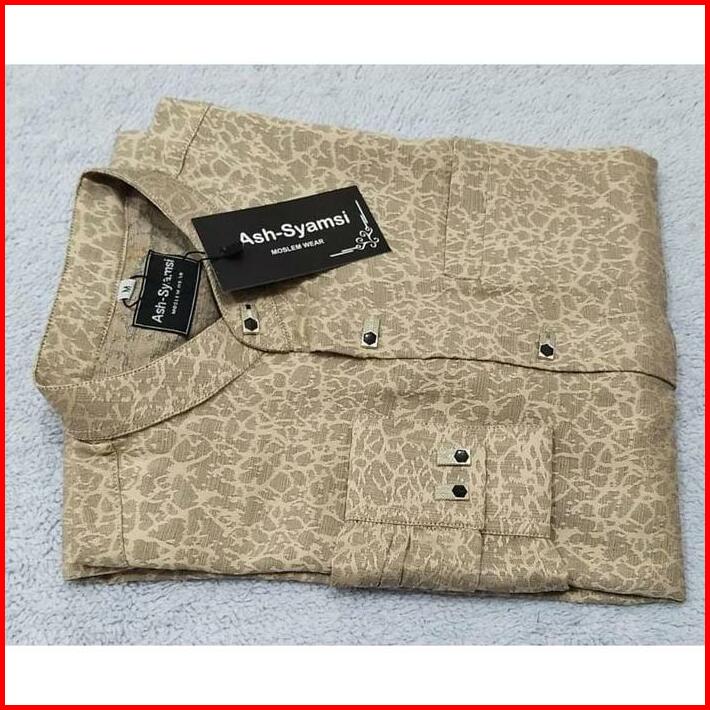 Koko Katun Jaguar Motif Coral Lengan Panjang Kancing Impor Baju Kain Nyaman Muslim Couple Embos Jubah Slimfit Kantong Su
