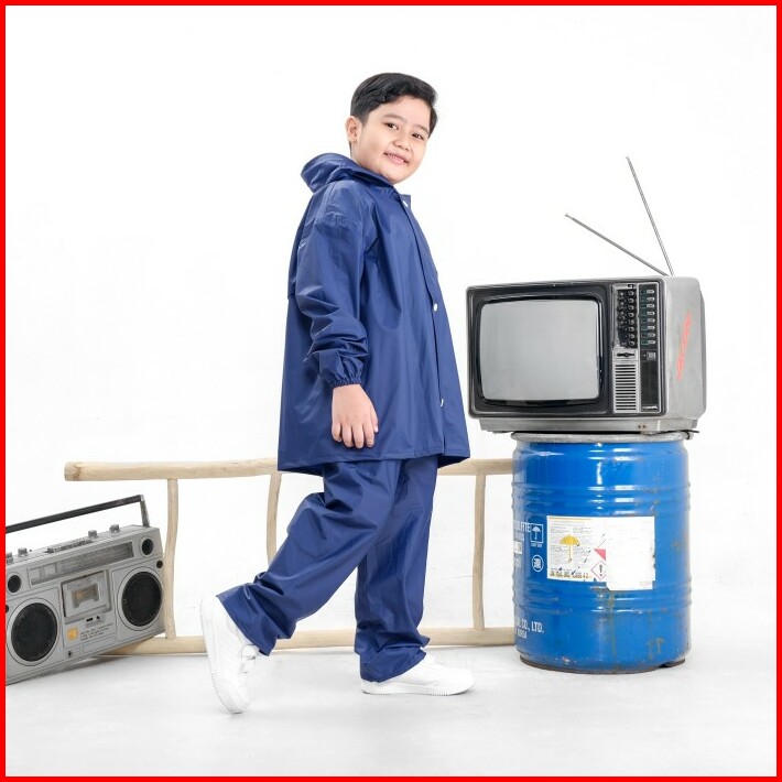 Hoodjas Jas Hujan Setelan Anak Navy Blue Mantel Anak Unisex