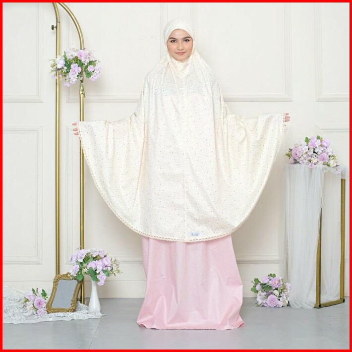 Mukena Anak Katun Jepang Ori Zlassica Star White Dusty Pink