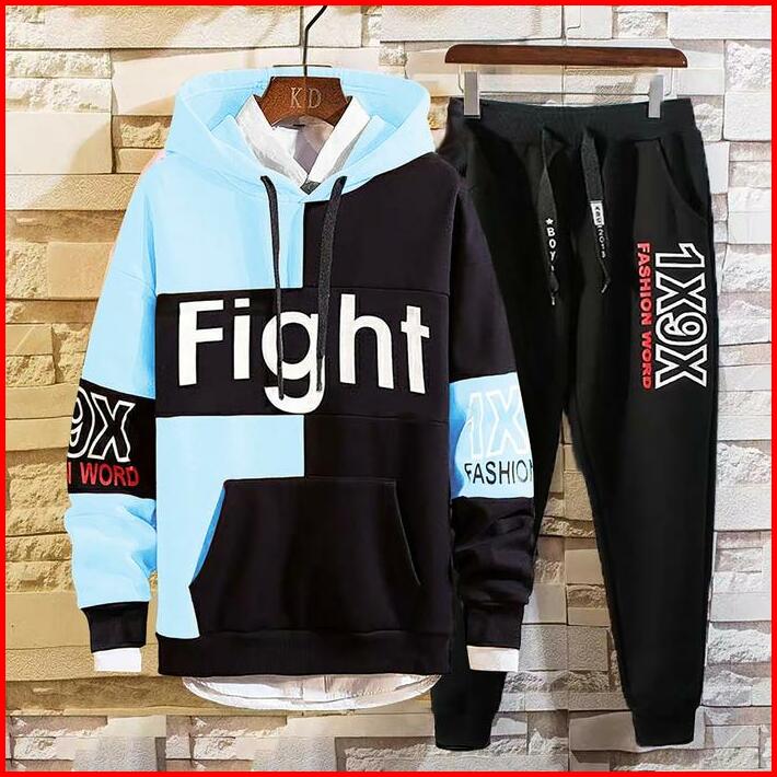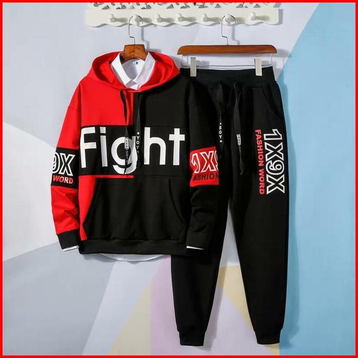 Stelan Fight Satu Set Fashion Pria Atasan Hoodie Jogger Sweater Crewneck Polos Keren Distro Setelan Cowok
