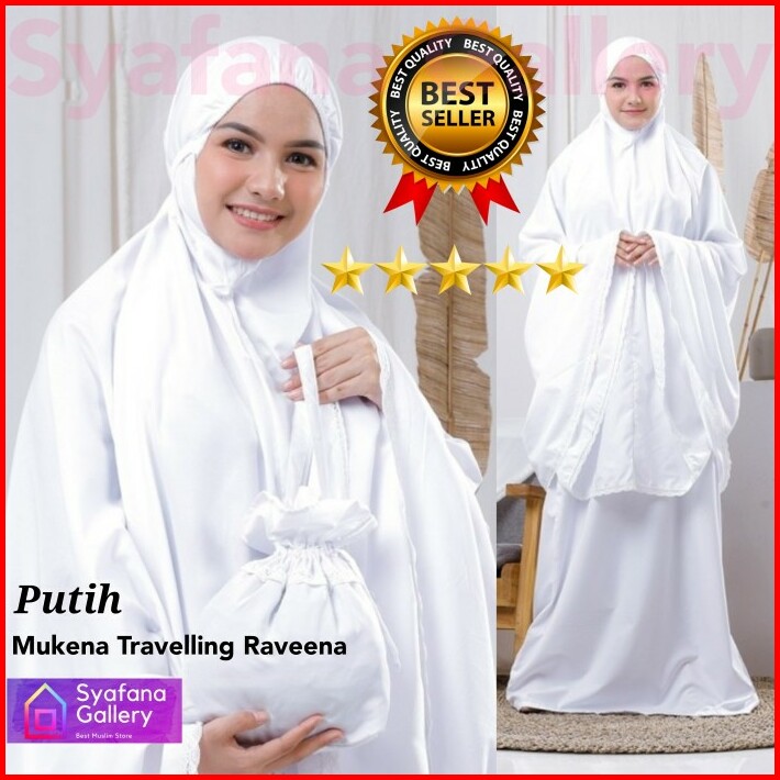 Mukena Dewasa Travelling Katun Raveena Putih Travel Polos Aruna Anzell