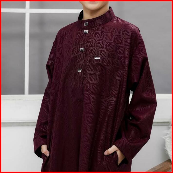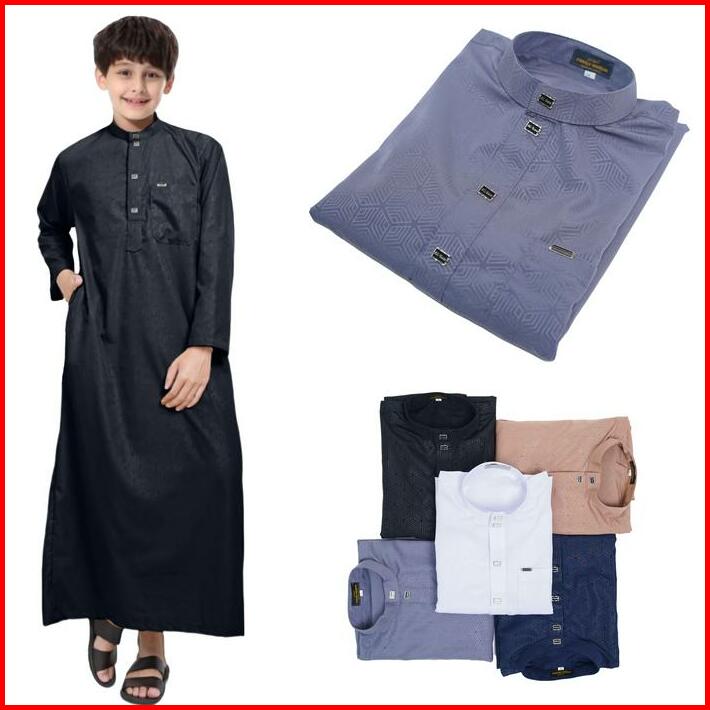 Jubah Anak Terbaru Lengan Panjang Bahan Kain Embos Motif Super Adem Gamis Al Qutub Thobe Anak Fashion Muslim Kancing Nya