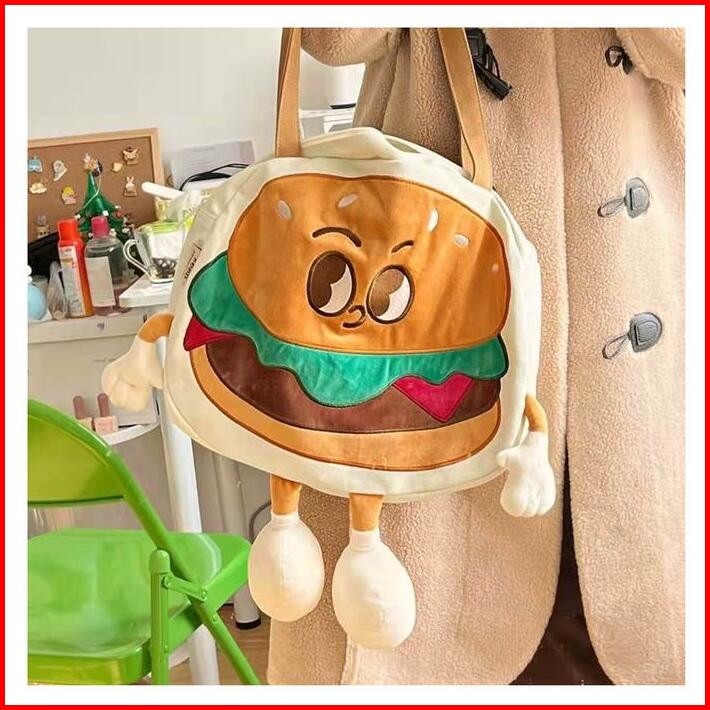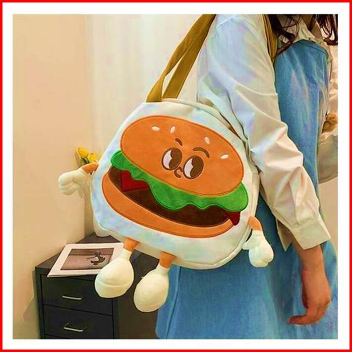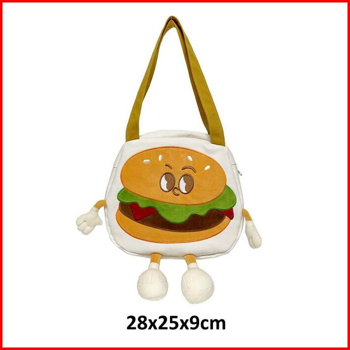 Tote Bag Kuliah Motif Burger Tas Selempang Wanita Import Korea Totebag