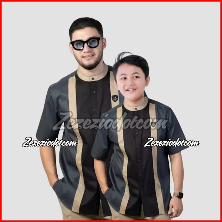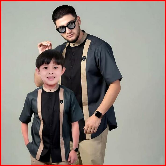 Baju Koko Couple Viral 2025 Atasan Ayah Dan Anak Lengan Pendek Bahan Adem Model Kombinasi Warna Motif Nuaiman
