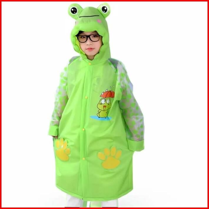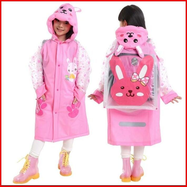 Jas Hujan Terusan Anak Lucu Dan Imut Dengan Tas Belakang Ada Ransel Dengan Warna Biru Hijau Pink Orange Pvc