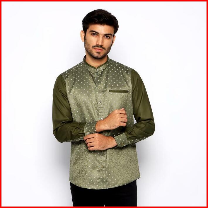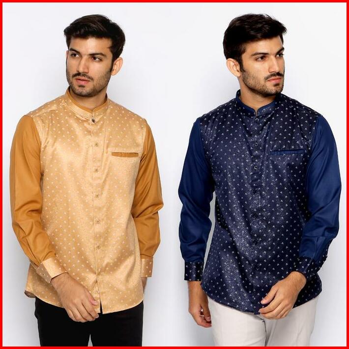 Limited Edition Casella Baju Koko Pria Dewasa Muslim Lengan Panjang Kombinasi Motif Batik Jeddah Design