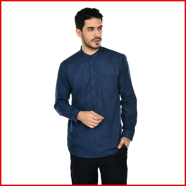 Baju Koko Kurta Pria Dewasa Lengan Panjang Polos Fit Katun Muslim Putih