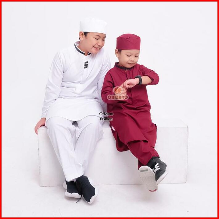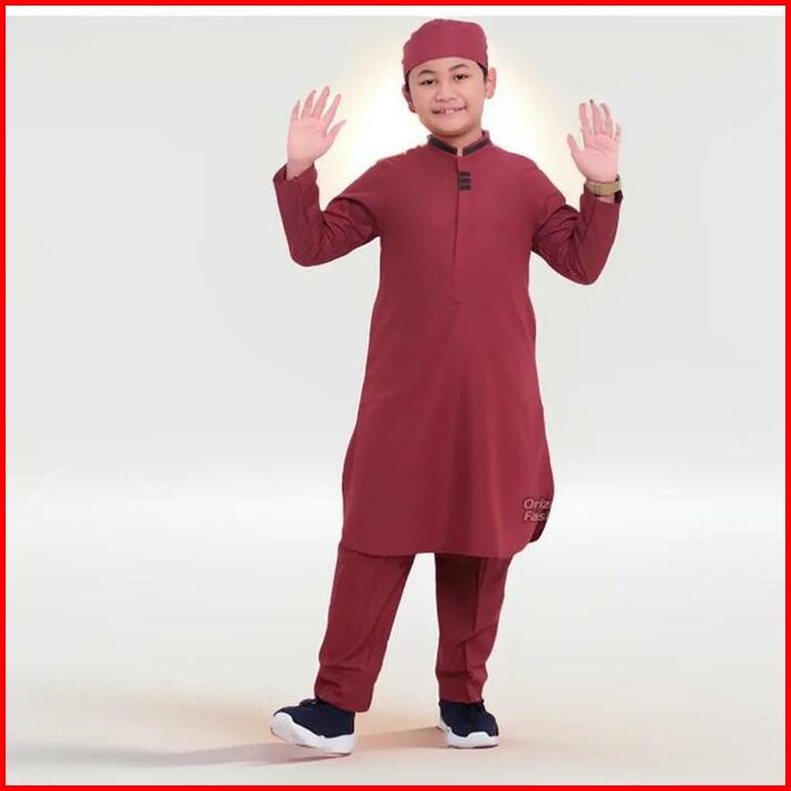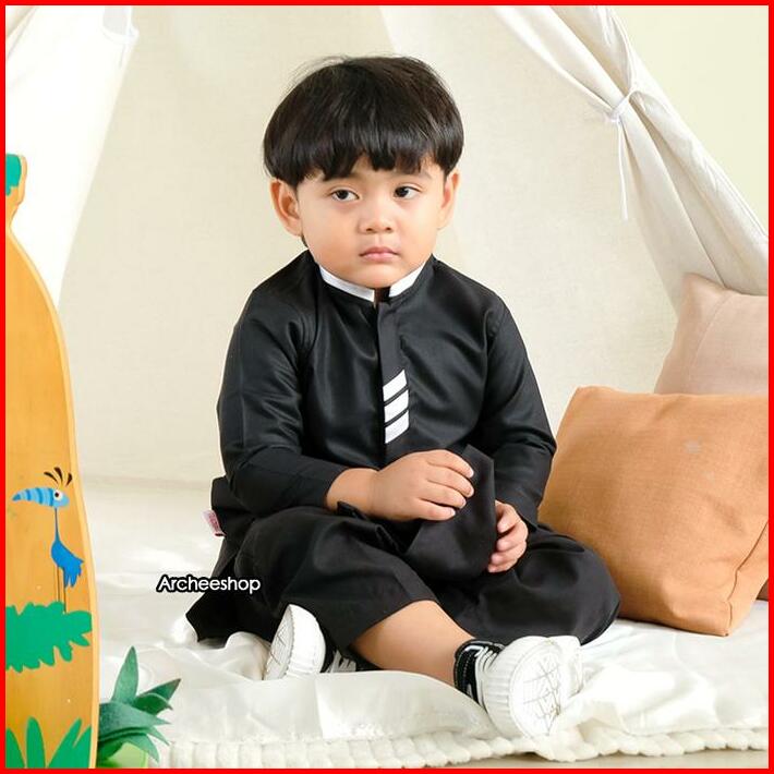 Setelan Koko Anak Laki-laki Baju Kurta Cowok Muslim Lengan Panjang Pasha Navy