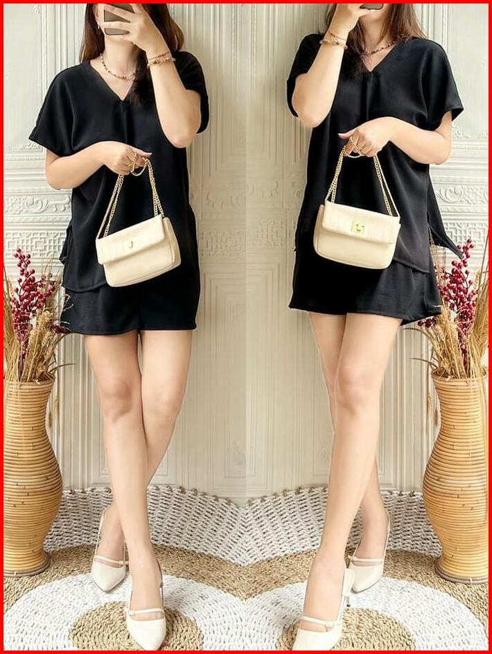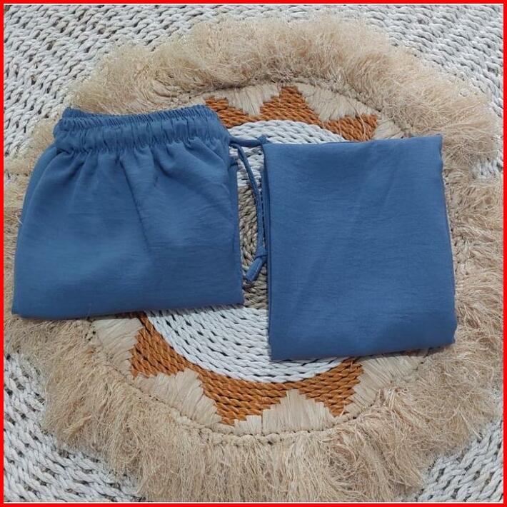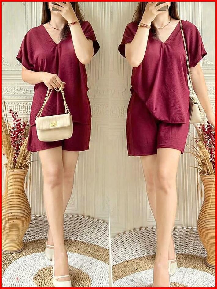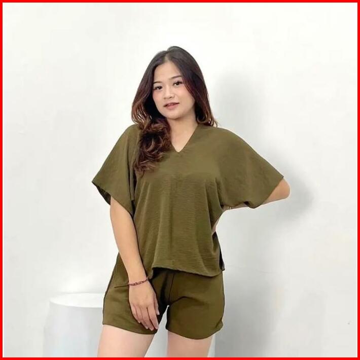 One Set Crincle Pendek Stelan Wanita Crincle Pendek Baju Celana Polos Lengan Pendek Setelan Wanita