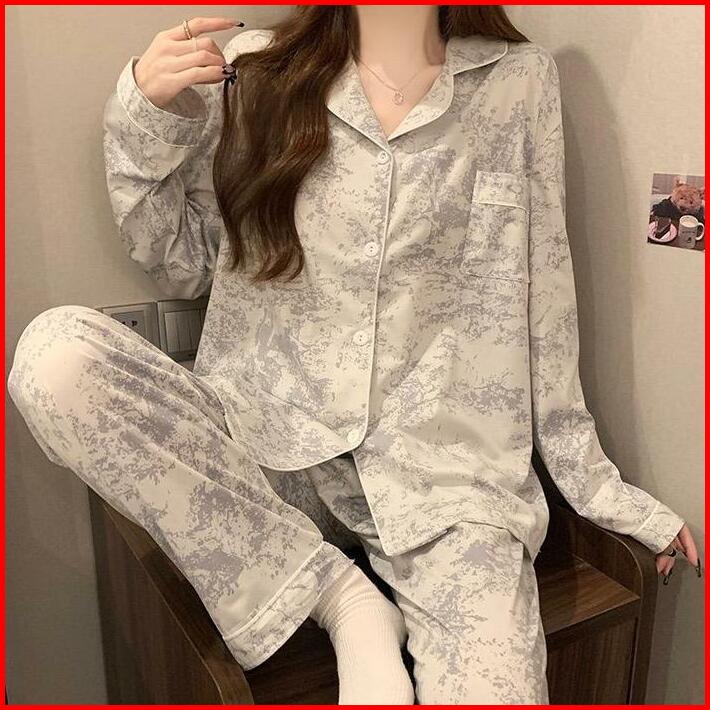 Piyama Satin Set Piyama Wanita Lengan Panjang Celana Panjang Pajamas Wanita Baju Tidur Wanita