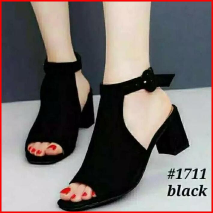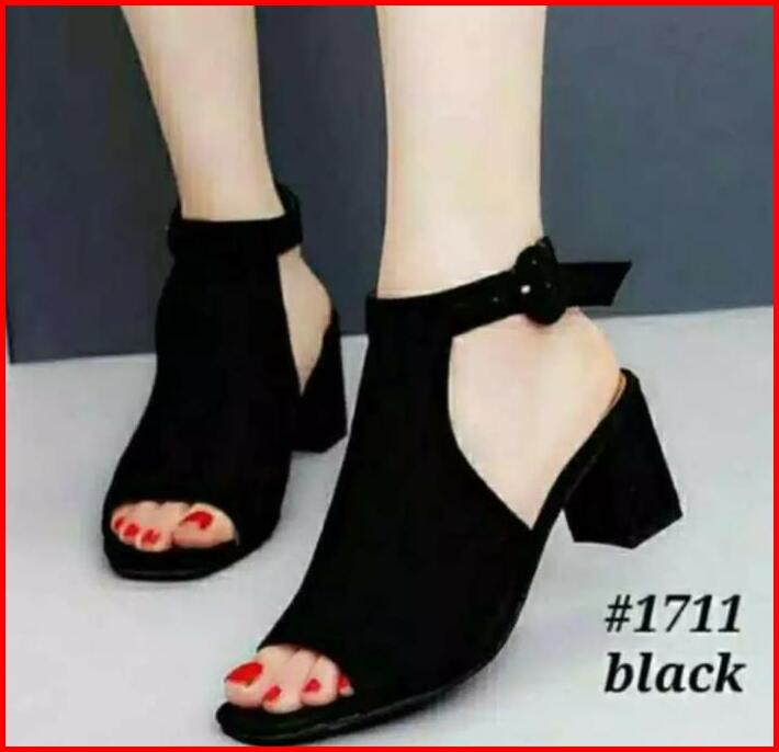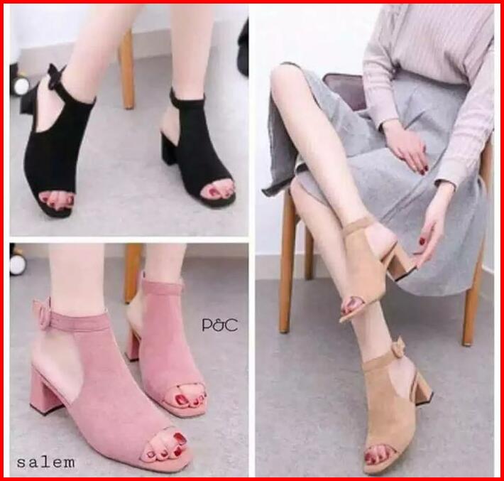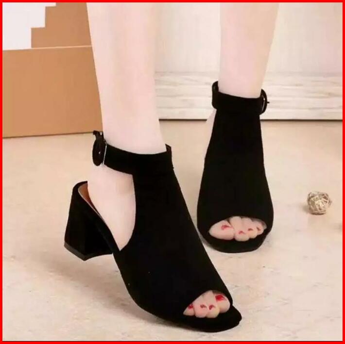 Sandal Wanita High Heels Suade Simple Model Dengan Sol Karet Tidak Licin Warna Hitam Dan Pink Tersedia Ukuran 37-40