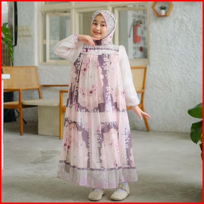 Altair.kids Hagia Dress Anak Premium Dress Anak Perempuan Import Dress Anak Ceruty Babydoll 5-12 Tahun Bunga Muslim Gami