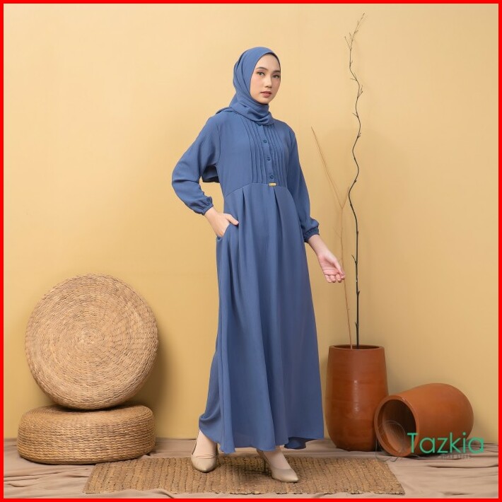 Dress Muslim Wanita Gamis Set Pashmina Azalia Denim Polos Crinkle