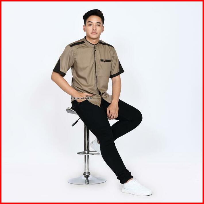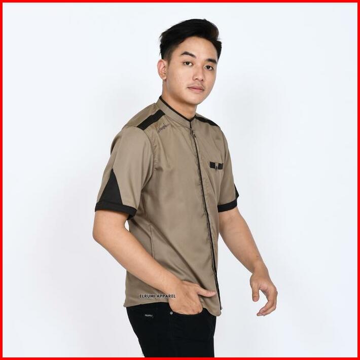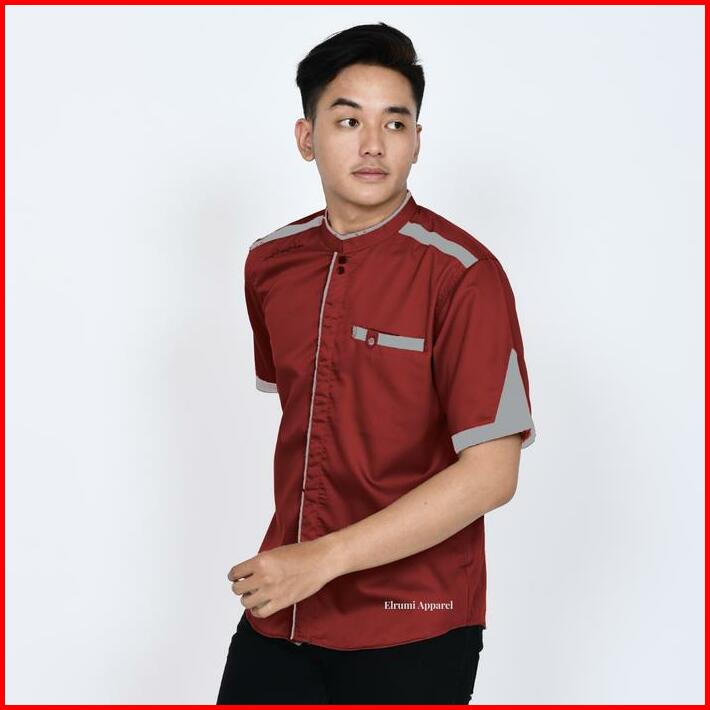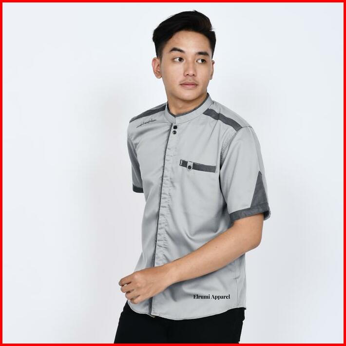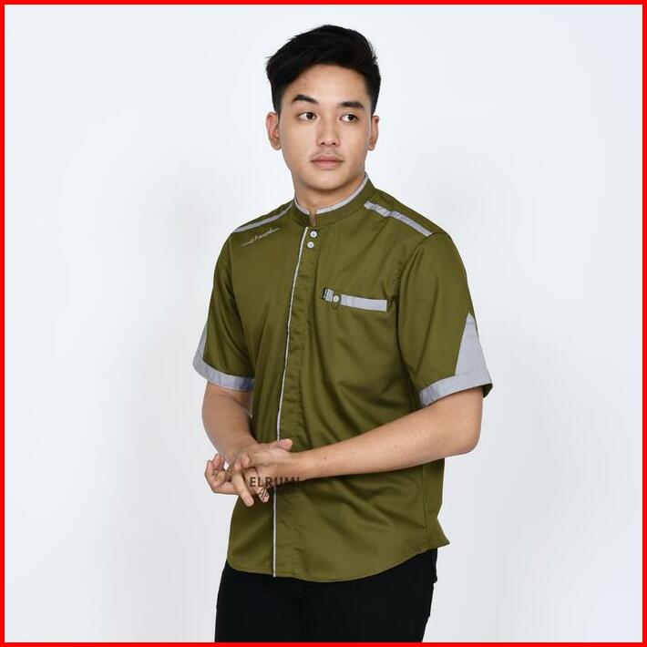 El Rumi Kemeja Baju Koko Muslim Atasan Pria Dewasa Lengan Pendek Pria Motif Yusinsun Bahan Katun Toyobo Nyaman Katun