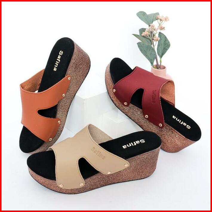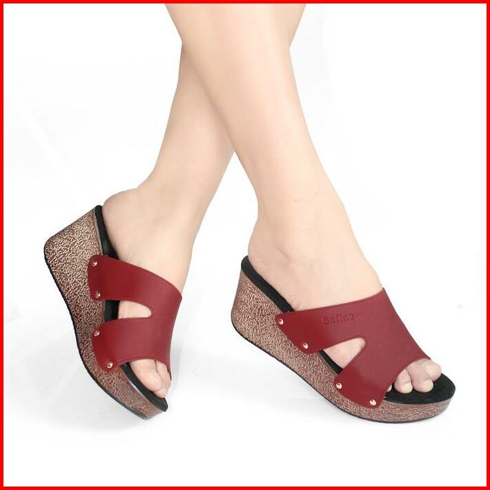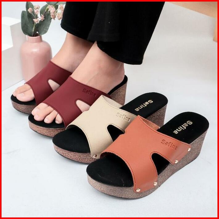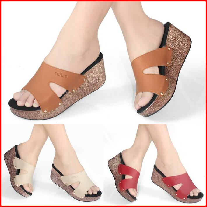 Sandal Wanita Wedges Sendal Perempuan Selop Slop Tinggi Hak Pesta Kondangan Kekinian Terbaru High Heels Ibu Ibu Terlaris