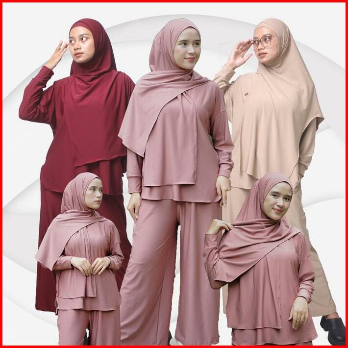 Azkadiena Rezkita One Set 3in 1 Baju Setelan Wanita Muslim Casual Plus Hijab