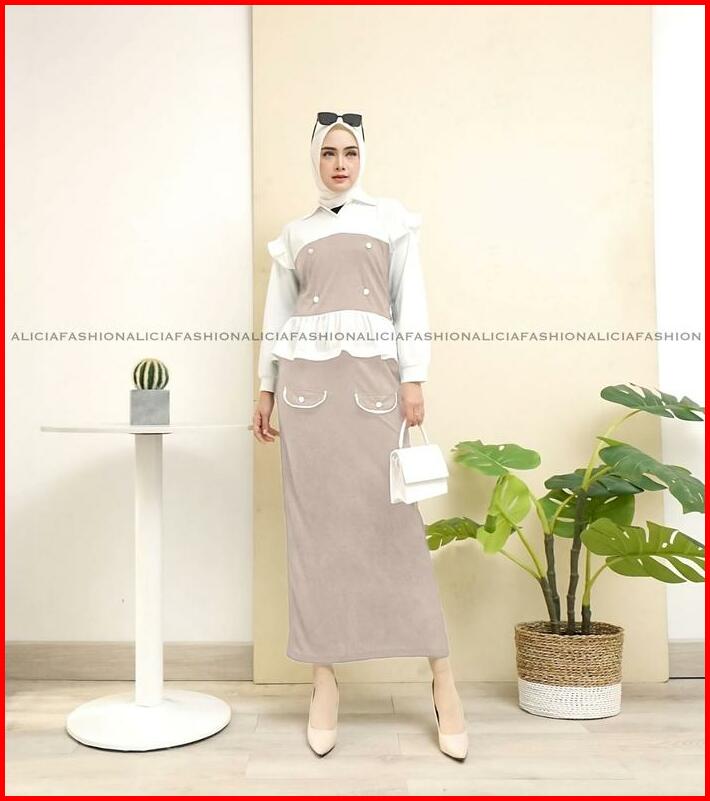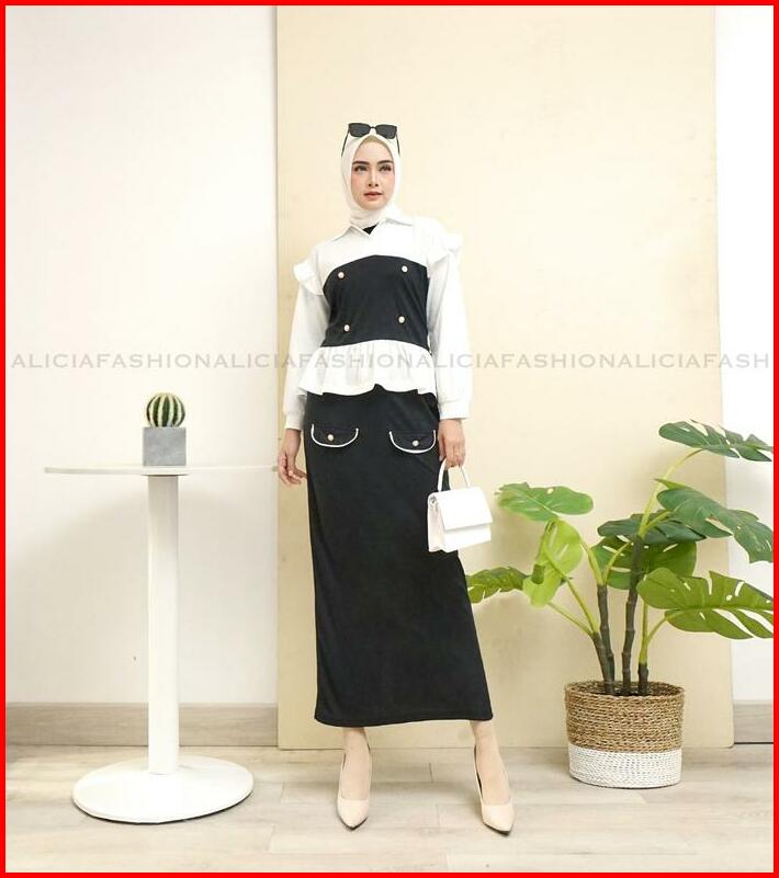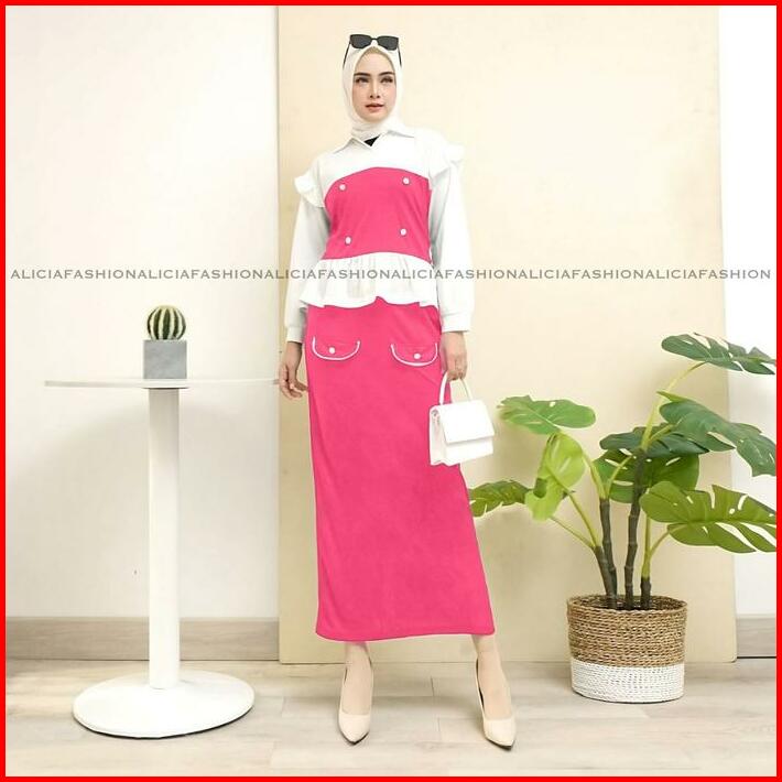 Alicia Ekslusif Ramdhan Oneset Setelan Yuri Blouse Dan Rok Panjang Premium Knit Mix Diamond Skin Wanita Muslim Atasan Da