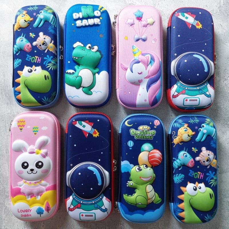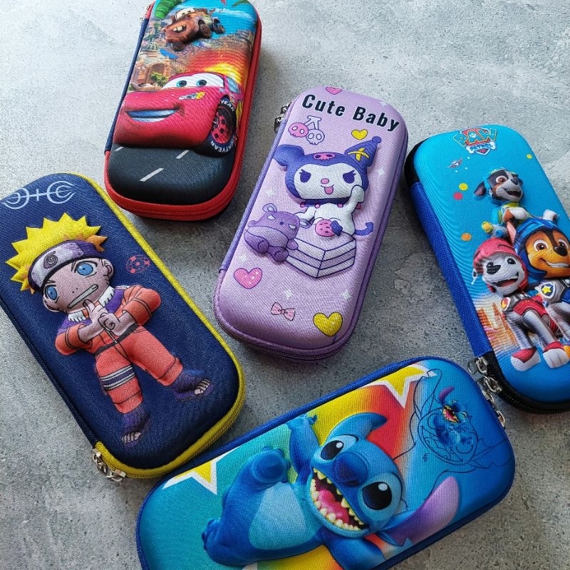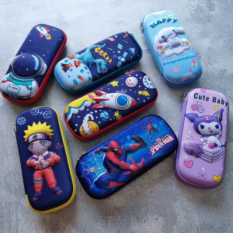 Kotak Pensil 3D Timbul Tempat Pensil Anak Sekolah TK SD Karakter Dino Astronot Unicron Kuromi Cars Naruto Spiderman