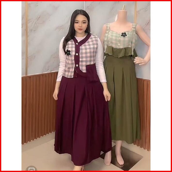 Co.diandra Set Rok Wanita Tanpa Lengan Barbara Silk Setelan Cewek Dewasa