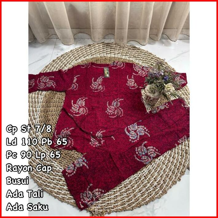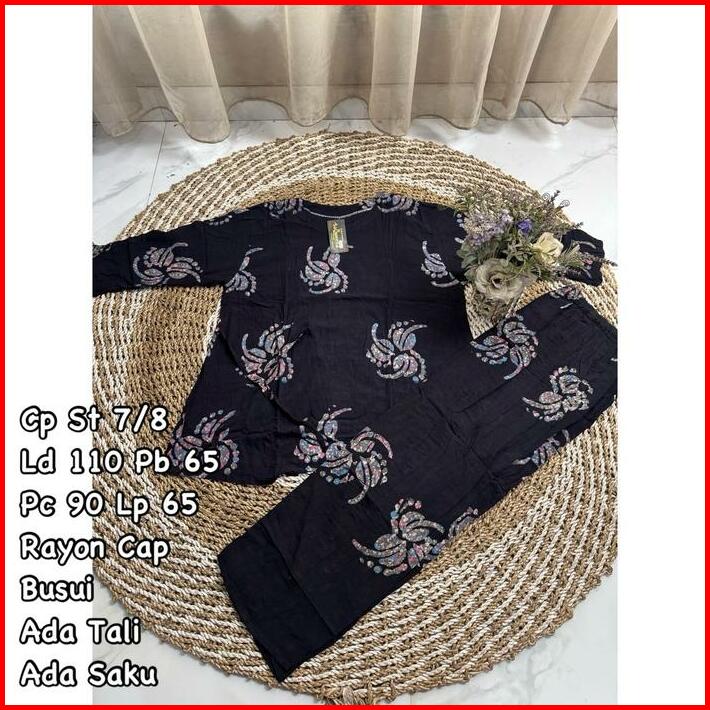 Setelan Cp Lusi Rainbow Lengan 7 8 Ld 110 Saqueena Batik Baju Celana Motif Variasi Wanita Panjang Atasan Pendek Top Kulo