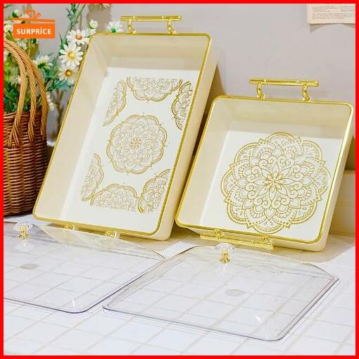 Surprice Set Tudung Saji Persegi Nampan Family Tudung Saji Segi Boneka Food Cover Nampan Kaca Akrilik Aesthetic Wadah Ku