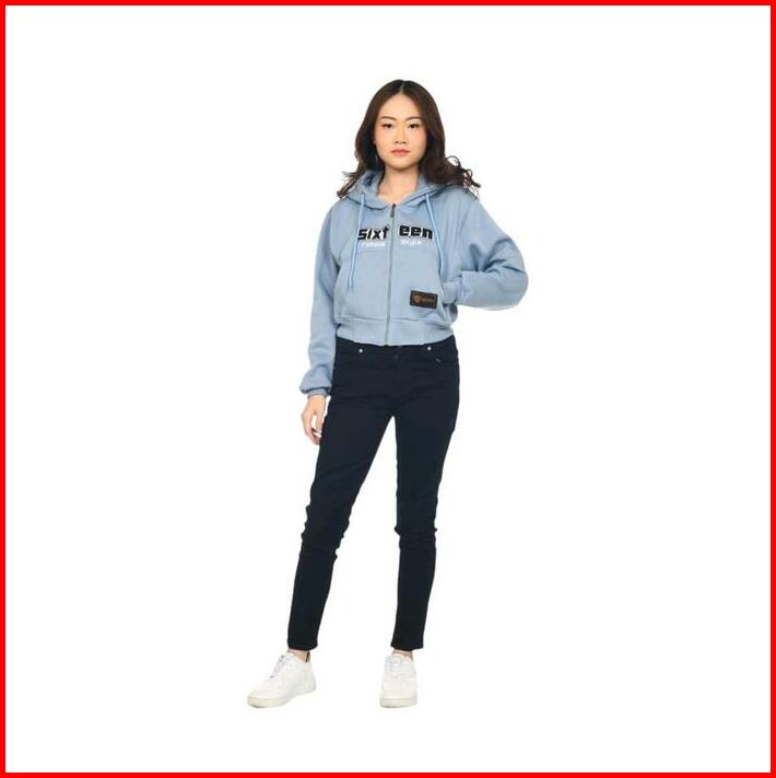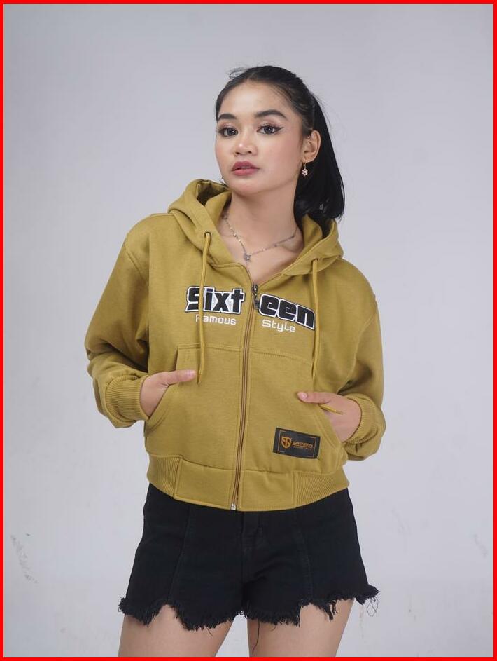 Sixteen Hoodie Crop Zipper Sweater Wanita Full Bordir