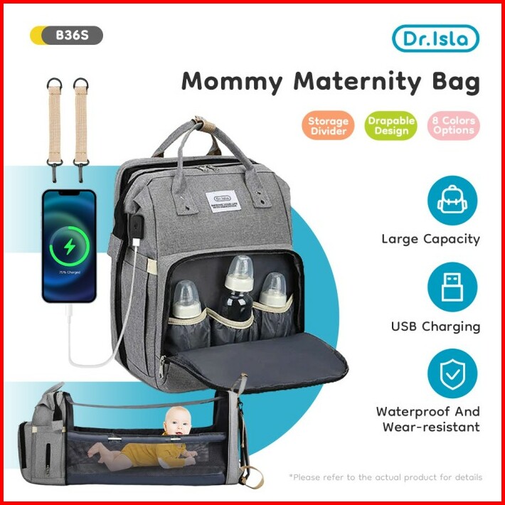 Dr.isla Tas Perlengkapan Bayi Diaper Bag Traveling Multifungsi Antiair