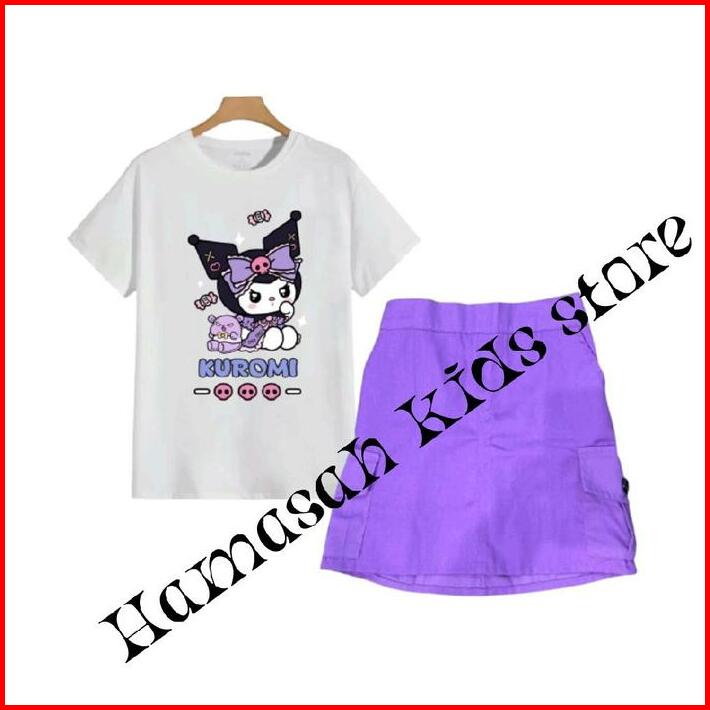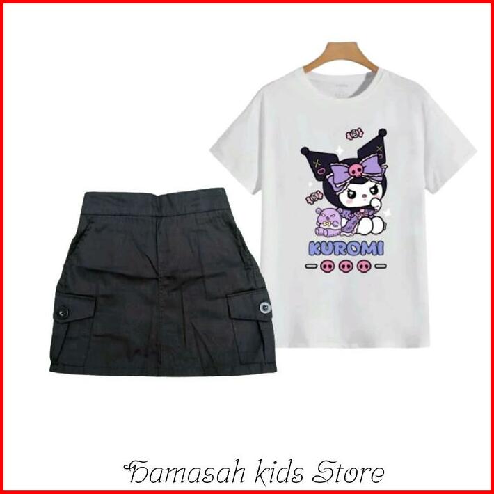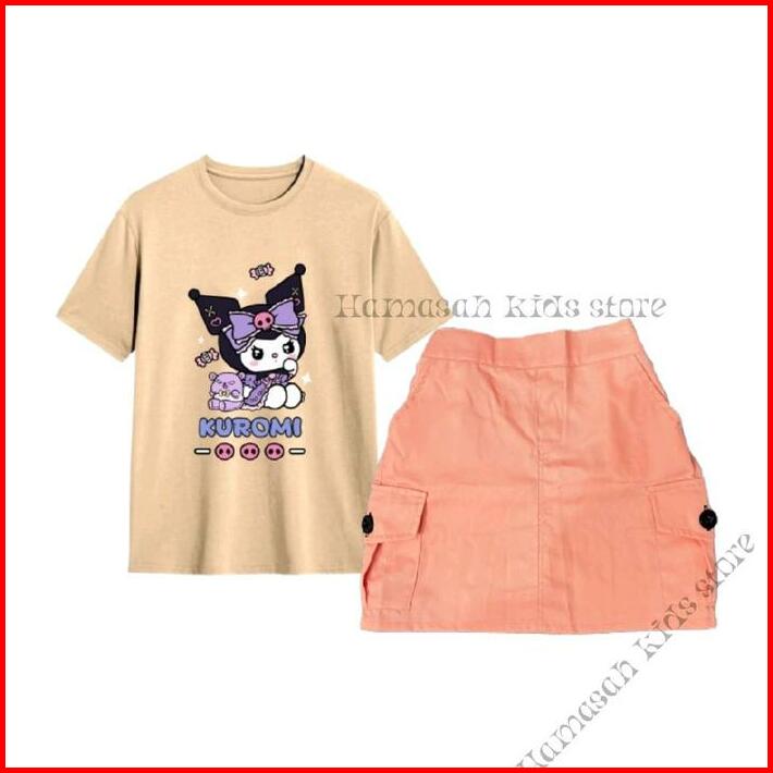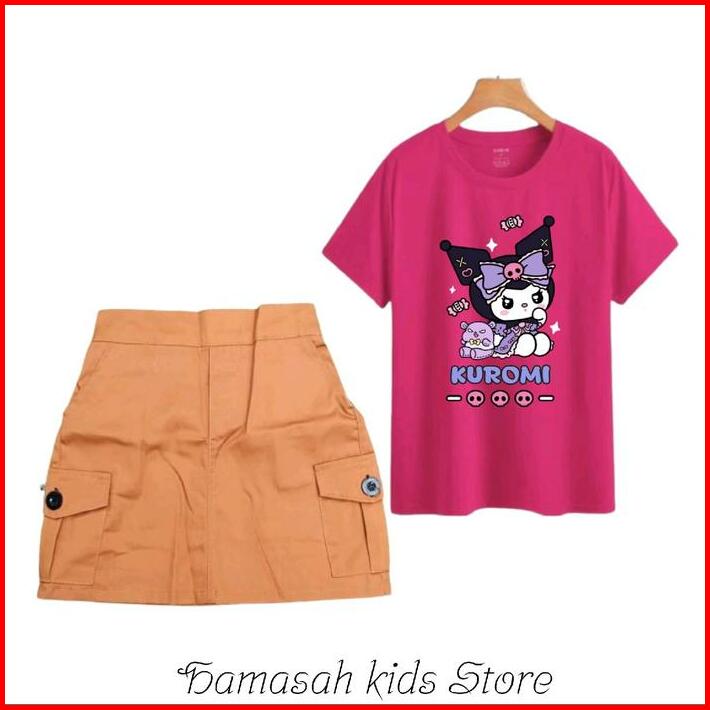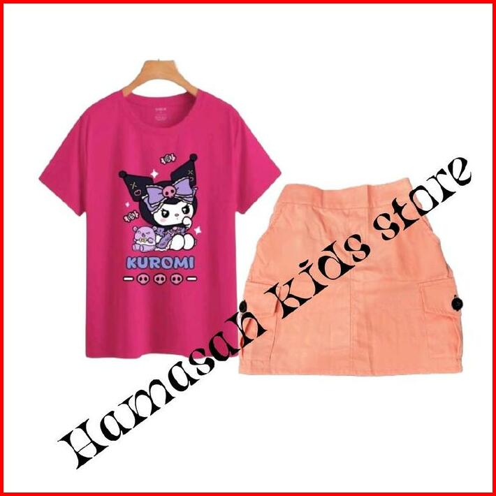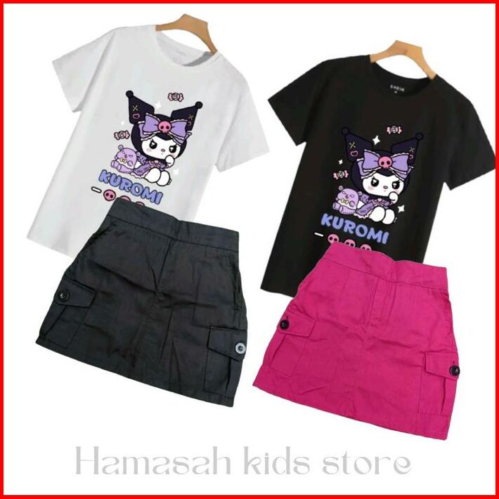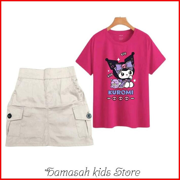 Setelan Kuromi Rokmini 1-13 Tahun Anak Perempuan Hitam Pink Abu Parsel Rok Cargo Pendek Anak Wanita
