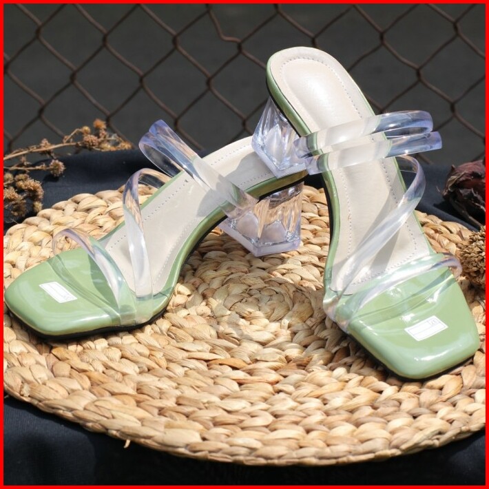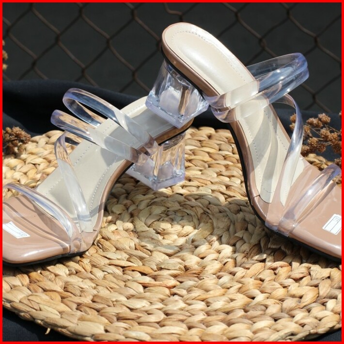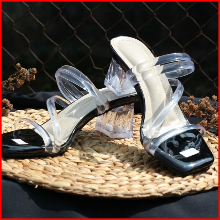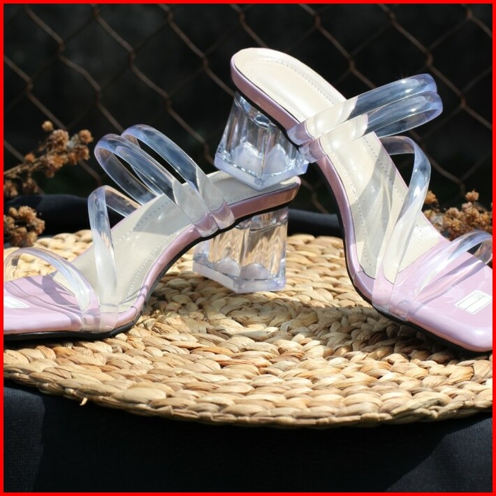 Sepatu Sandal High Heels Tali Hak Kaca Transparan Tahu 5cm Terbaru