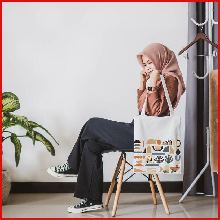Sevine Tote Bag Resleting Drill Klasik Abstrak