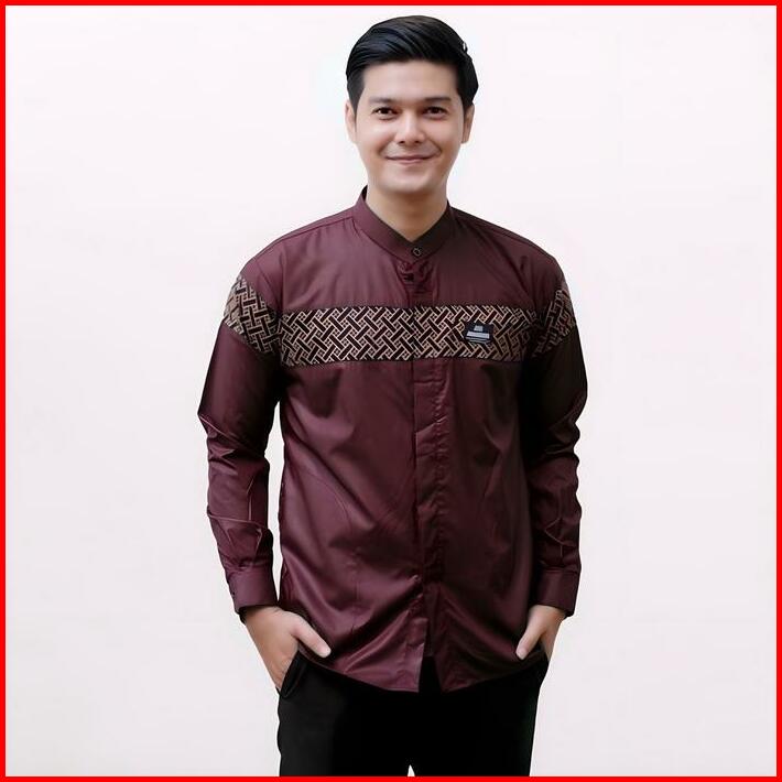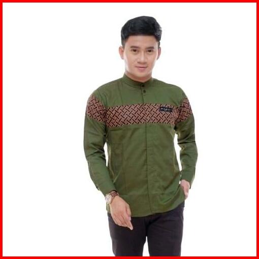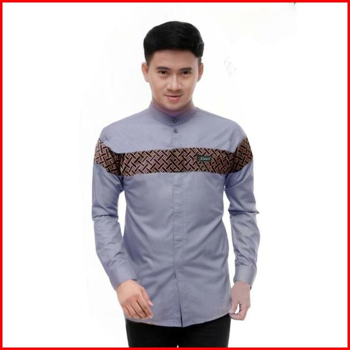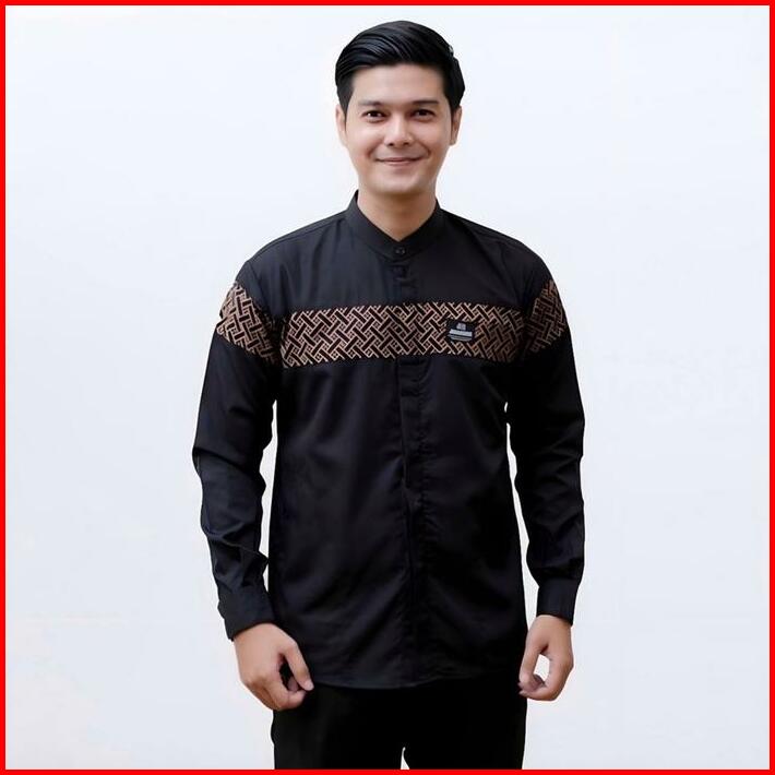 Baju Koko Pria Lengan Panjang Motif Kobata Kombinasi Batik Warna Hitam