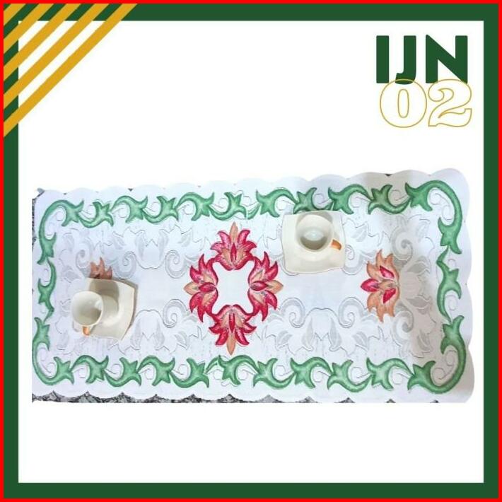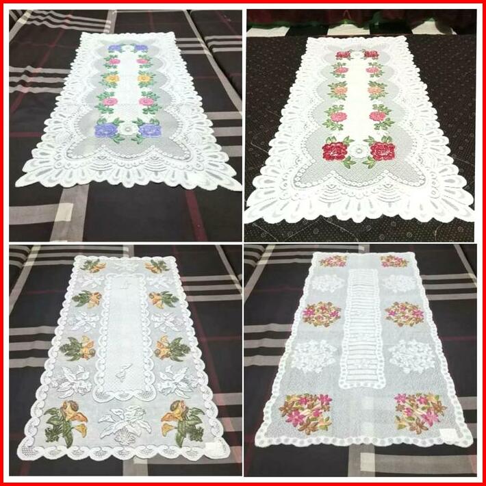 Ijn Taplak Meja Tamu Hias Kain Strimin Rajut Ukuran 50x100 Warna Putih Unik